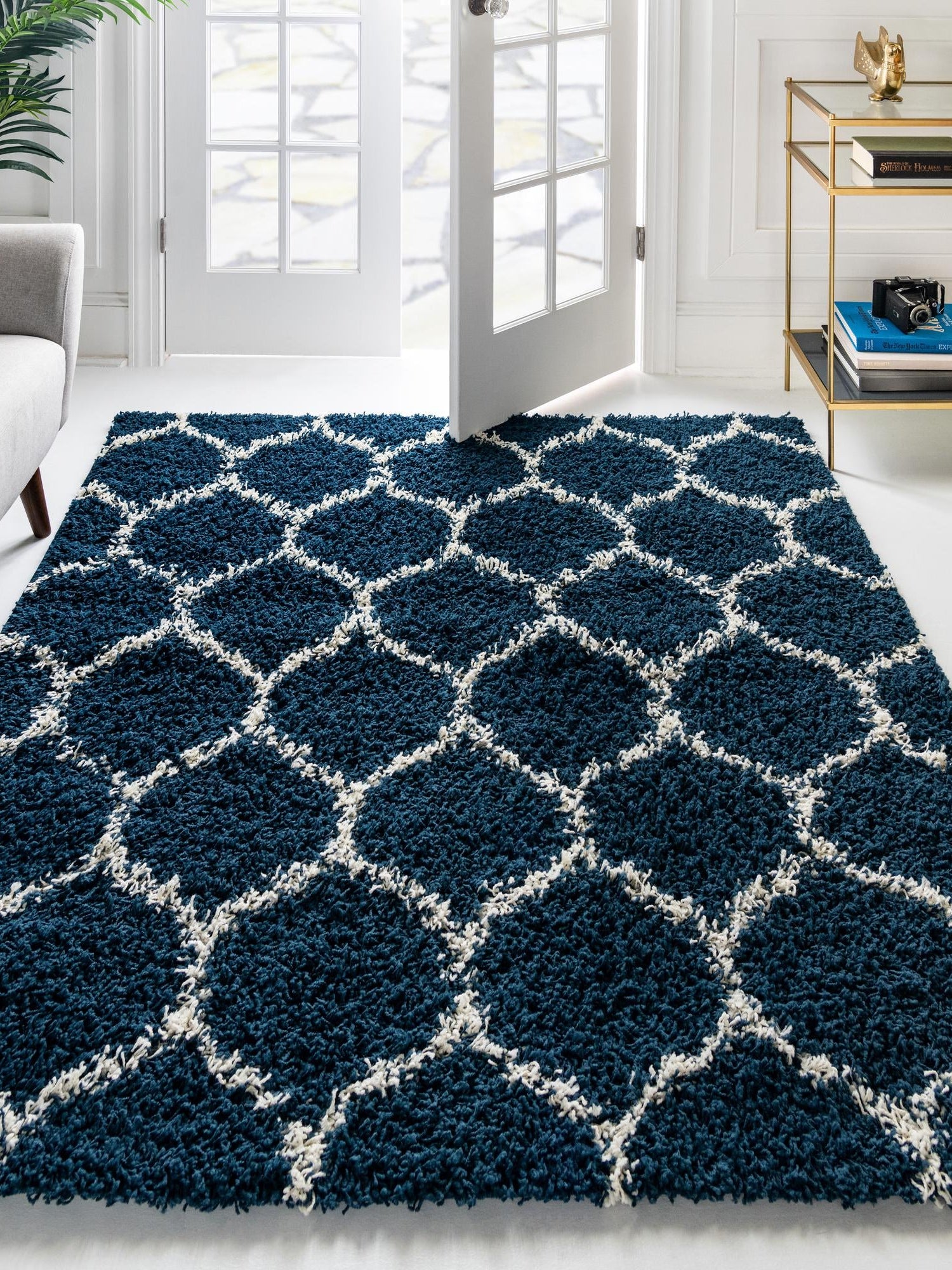 Navy Blue 7' 10 x 7' 10 Trellis Shag Square Area Rug Thick ...