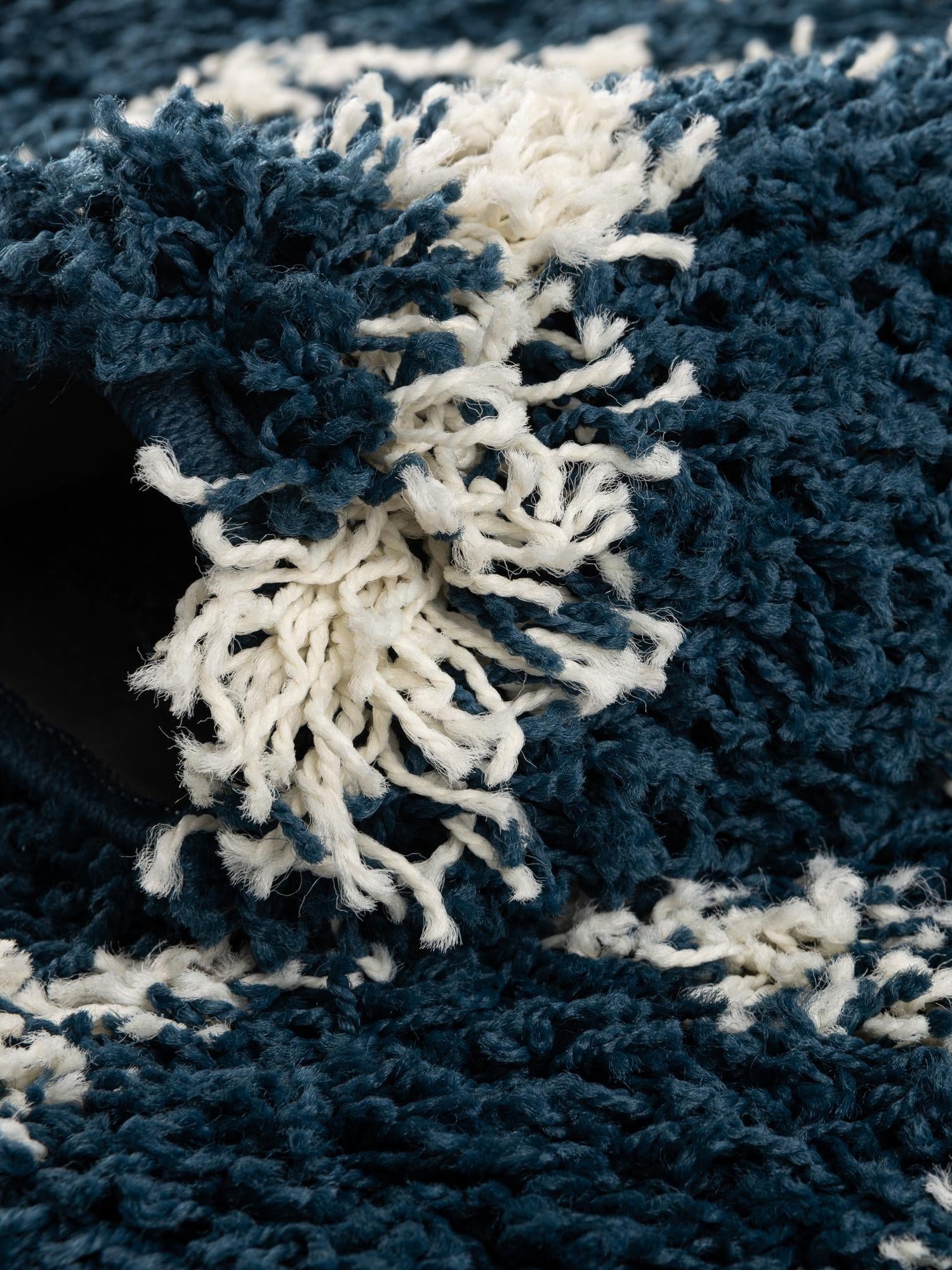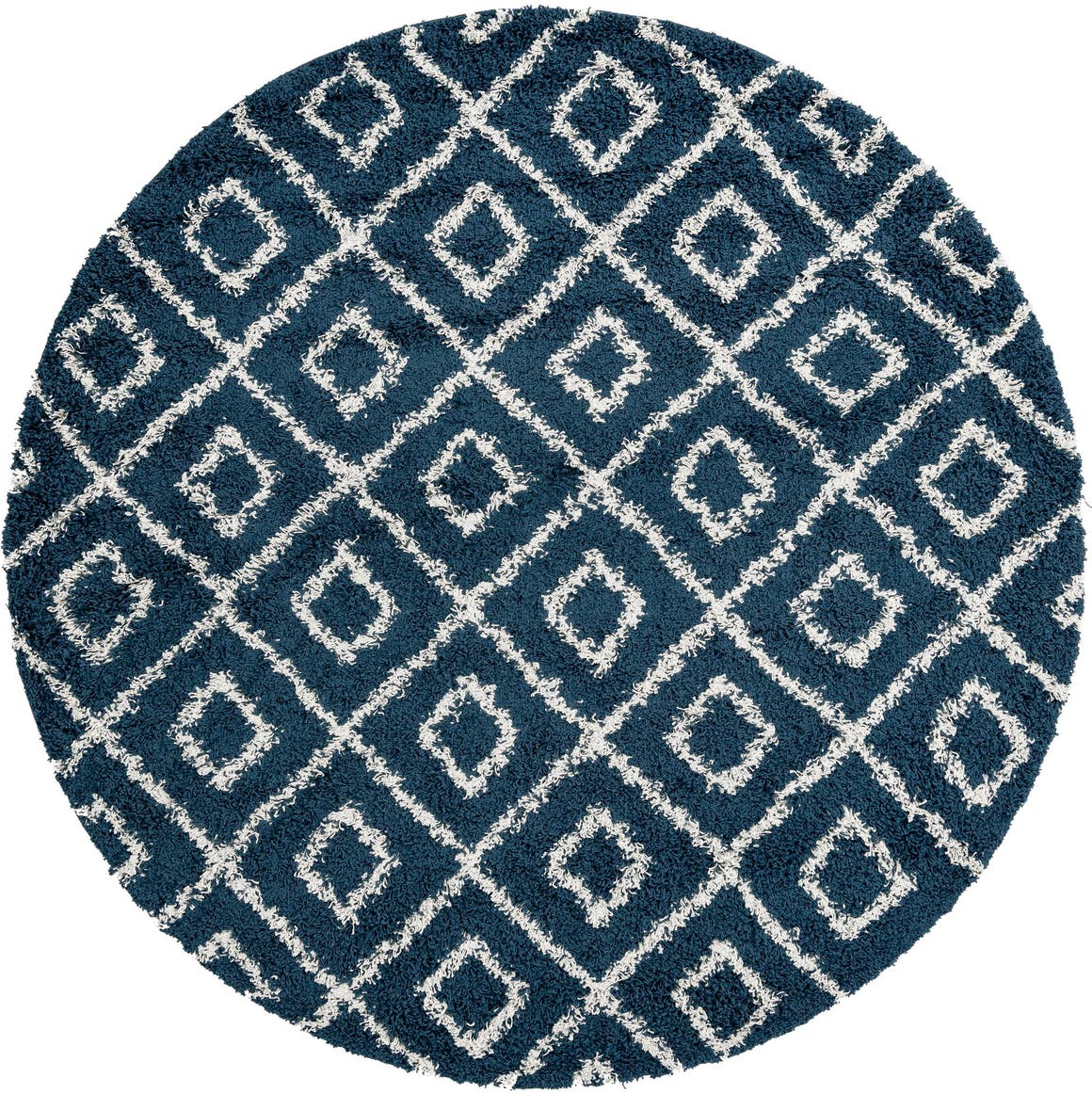 Navy Blue 7' 10 x 7' 10 Trellis Shag Round Area Rug Thick S...