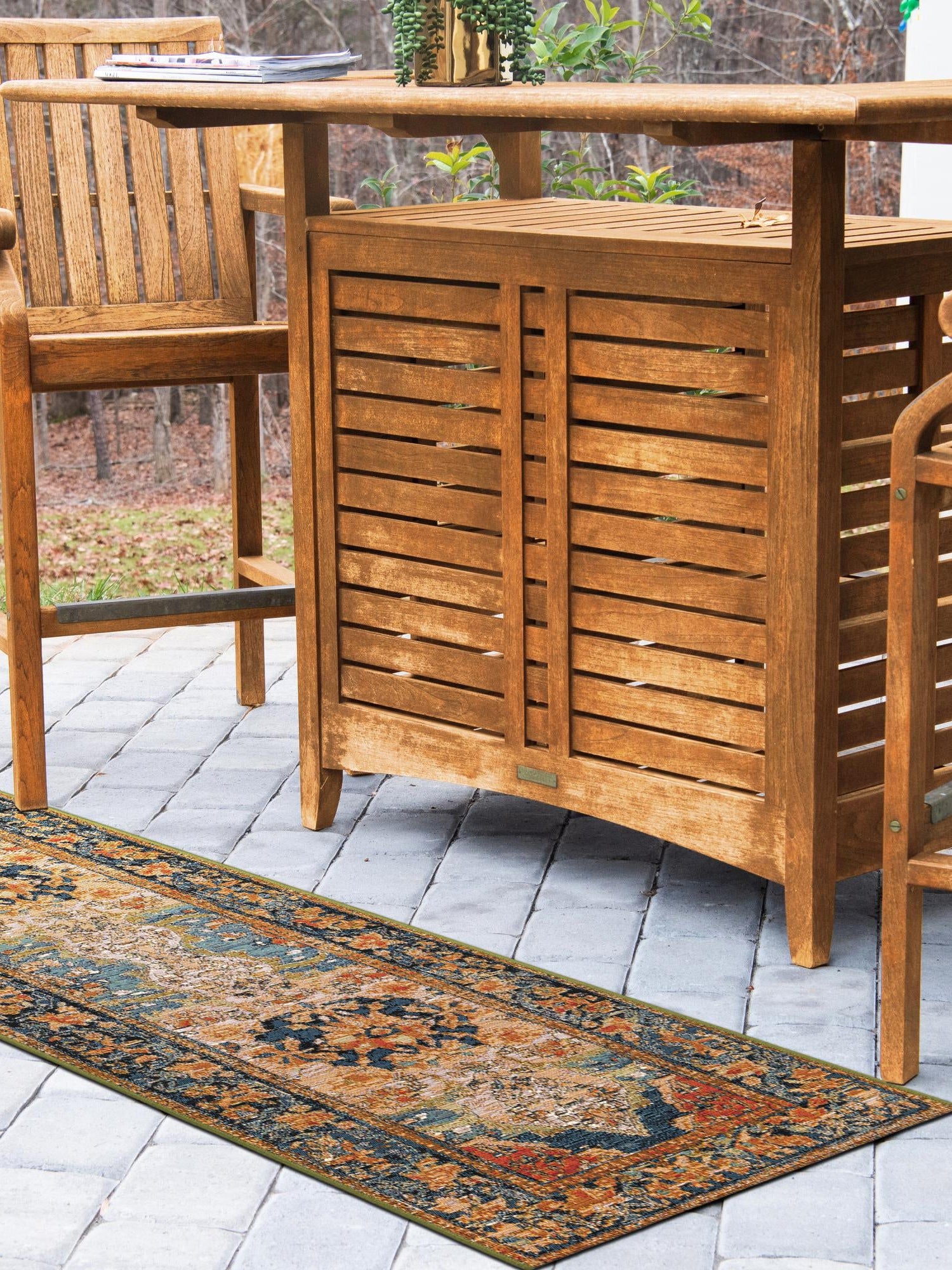 - Inspired Design: This rug features a traditional Persian-inspired design that adds a touch of elegance to your outdoor setting. With intricate patterns and rich colors, it provides a refined look that enhances any outdoor living space. Create a welcoming atmosphere for family and guests with this sophisticated accent piece that embodies classic charm.