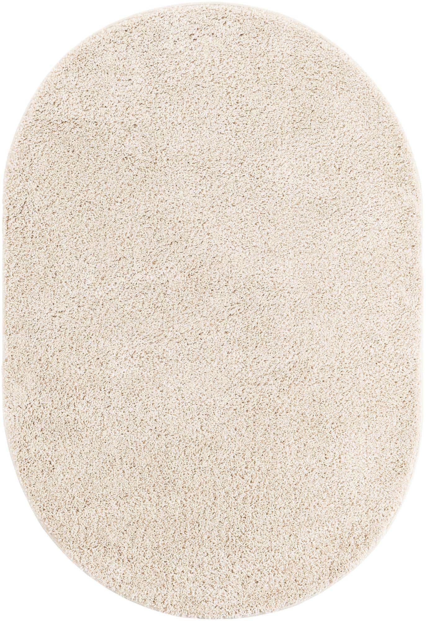 Oatmeal Beige 4' 1 x 6' 1 Soft Solid Shag Oval Area Rug Thi...