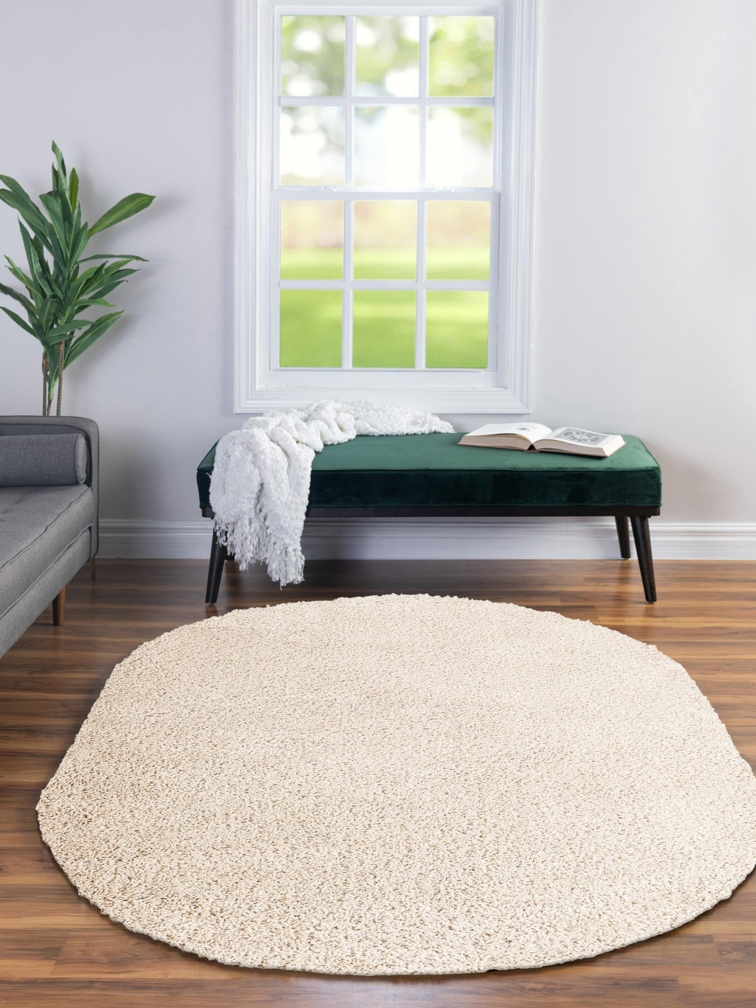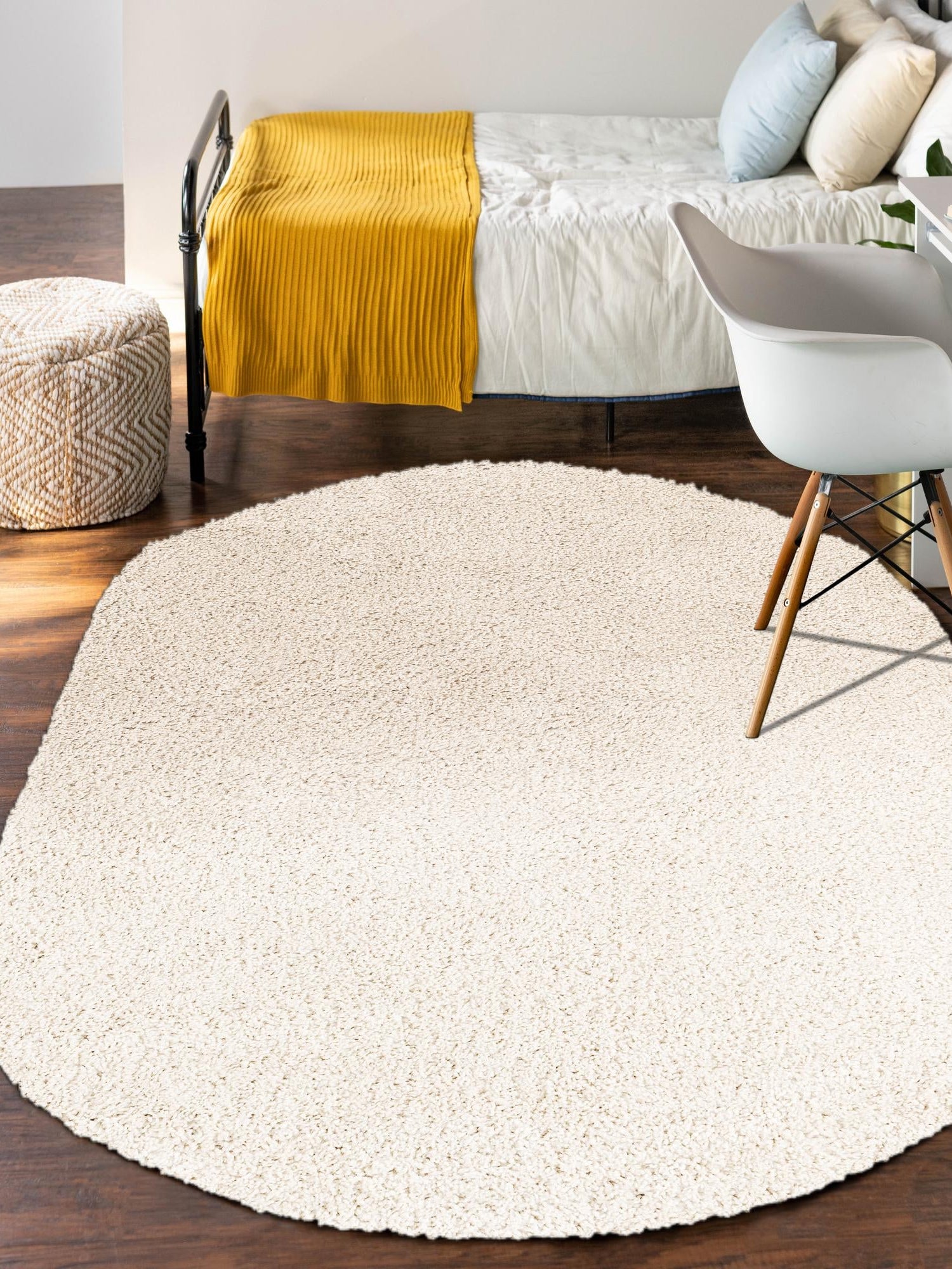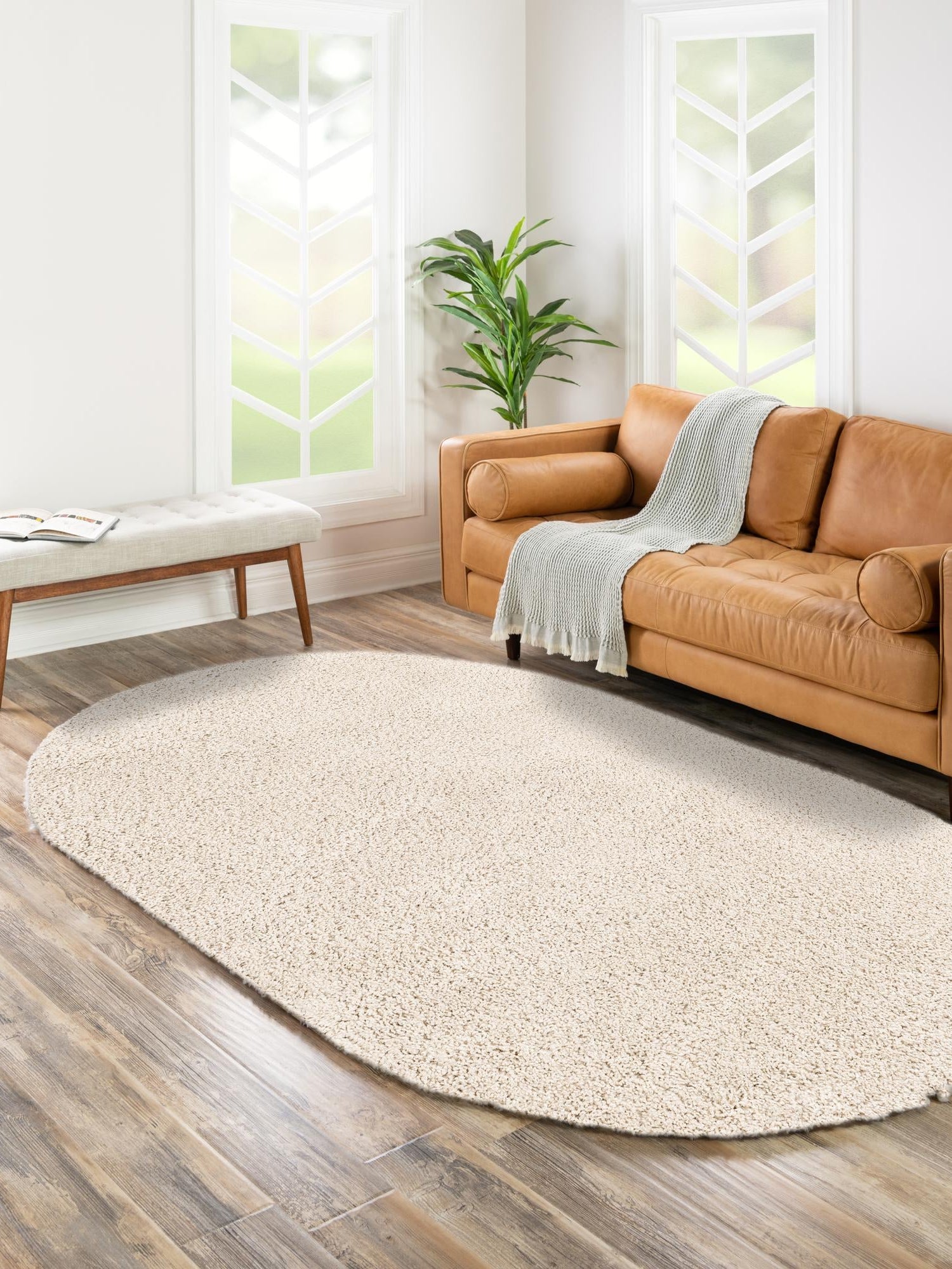 Oatmeal Beige 5' 3 x 8' Soft Solid Shag Oval Area Rug Thick Soft Touch Fluffy & Plush Shaggy Pile