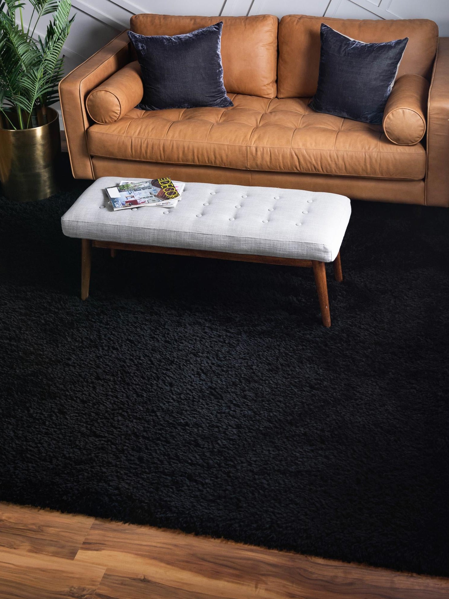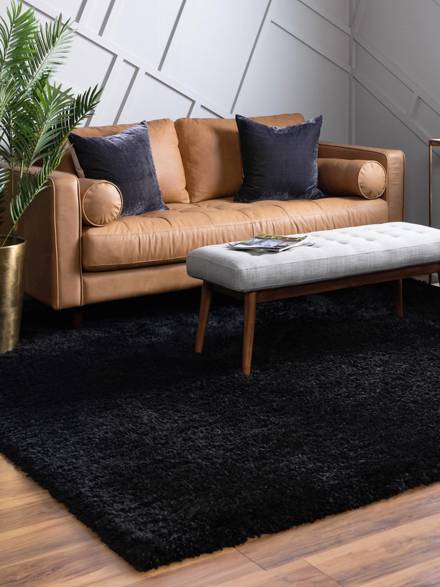 - Luxurious Appearance: Crafted in an elegant Onyx Black color, this rug instantly elevates any room with its sleek and sophisticated look. The deep, rich hue complements a variety of color schemes, allowing it to seamlessly blend with your existing furniture and décor. Add a touch of luxury to your home while maintaining a minimalist style.