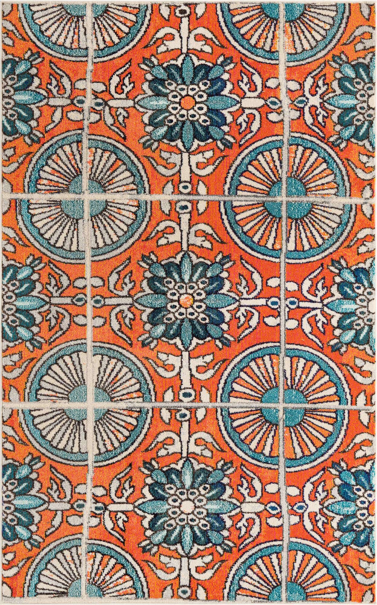 Orange 5' 1 x 8' Estrella Rectangle Area Rug 100% Polypropylene Non-Shedding Stain Resistant Carpet Colorful Modern Abstract Design Easy Clean for Home Decor