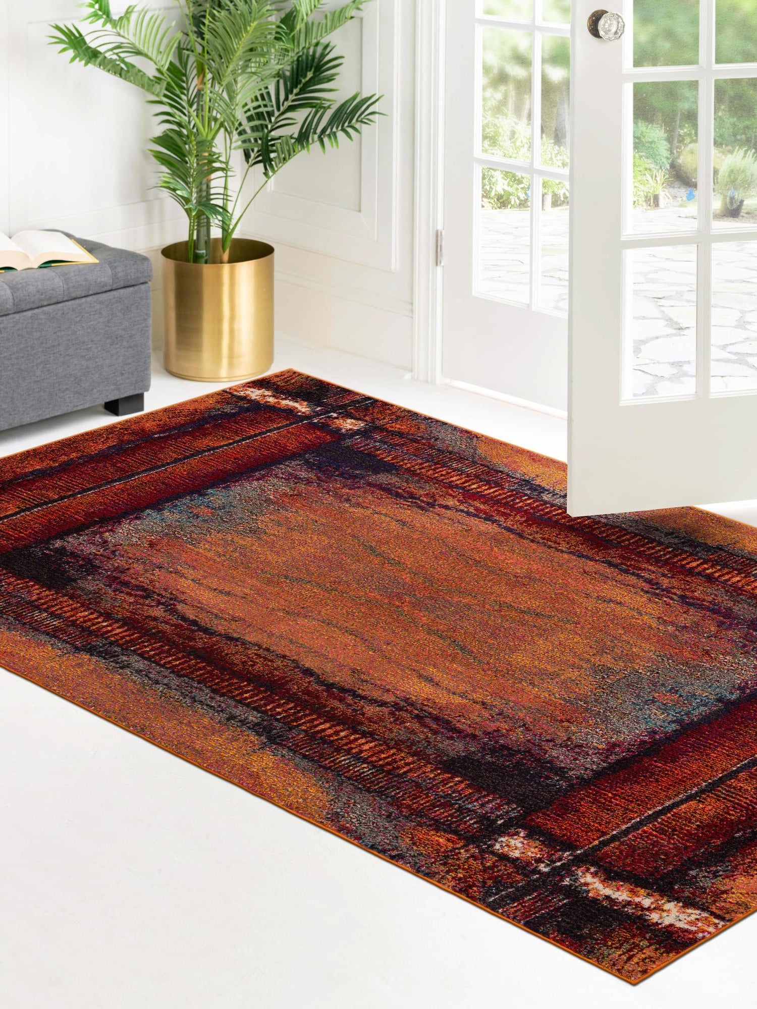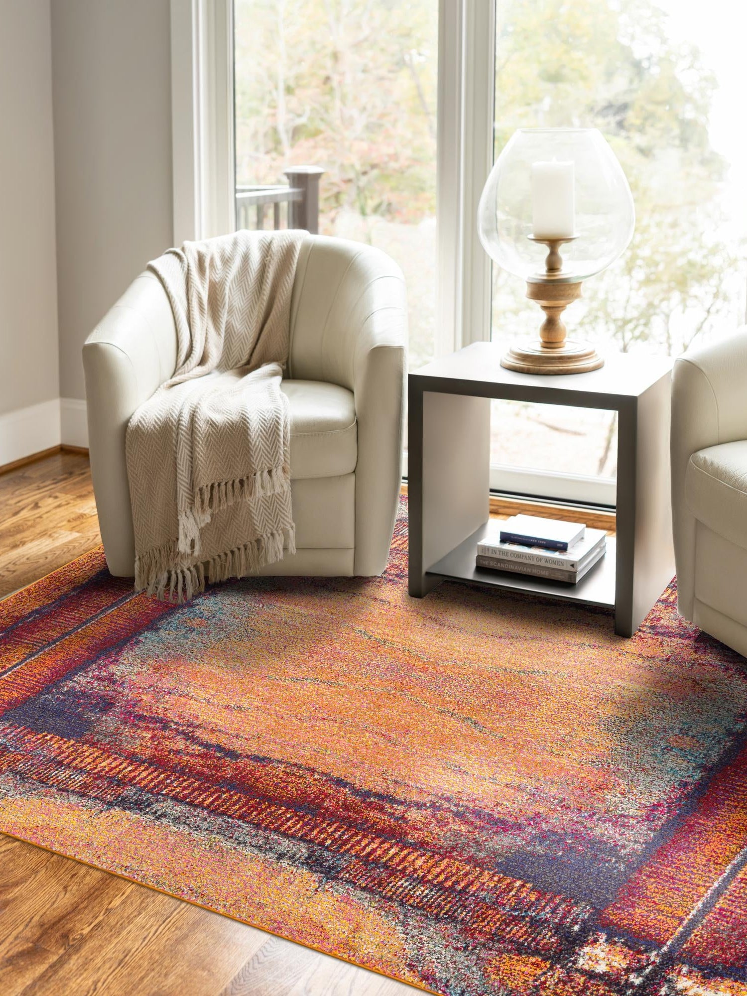Orange 6' 1 x 9' Estrella Rectangle Area Rug 100% Polypropylene Non-Shedding Stain Resistant Carpet Colorful Modern Abstract Design Easy Clean for Home Decor