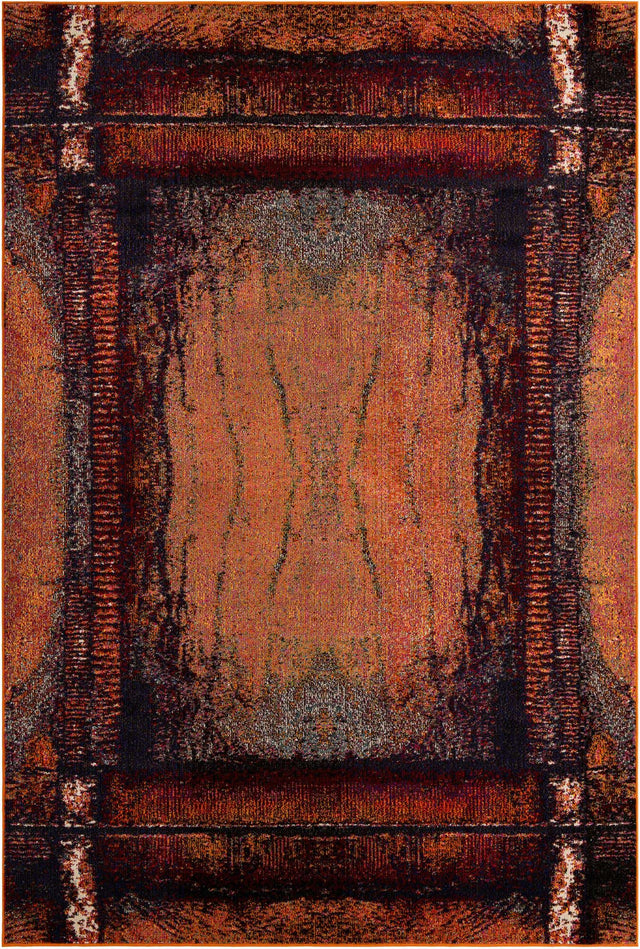 Orange 7' 1 x 10' Estrella Rectangle Area Rug 100% Polypropylene Non-Shedding Stain Resistant Carpet Colorful Modern Abstract Design Easy Clean for Home Decor