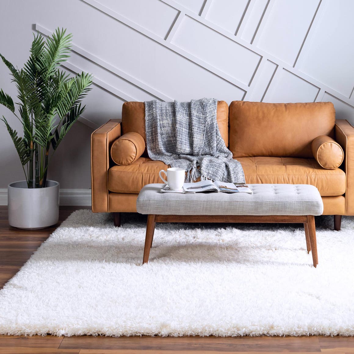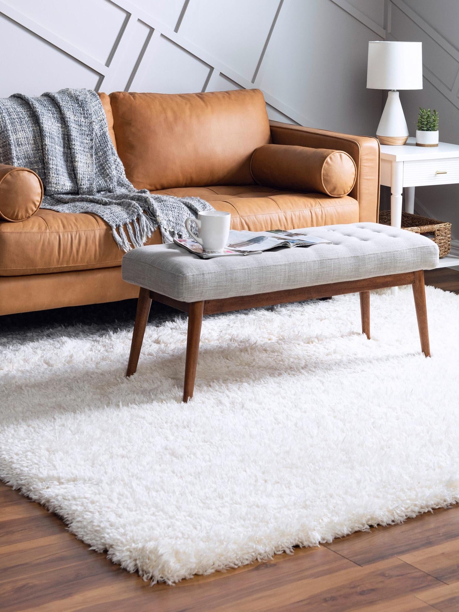 - Luxurious Material: Crafted from 100% polyester, this rug provides a soft and plush feel, inviting you to sink your feet into its fluffy texture. The high-quality material not only adds comfort but also ensures durability, making it suitable for high-traffic areas. Enjoy the luxurious look and feel for years to come with this resilient shag rug.