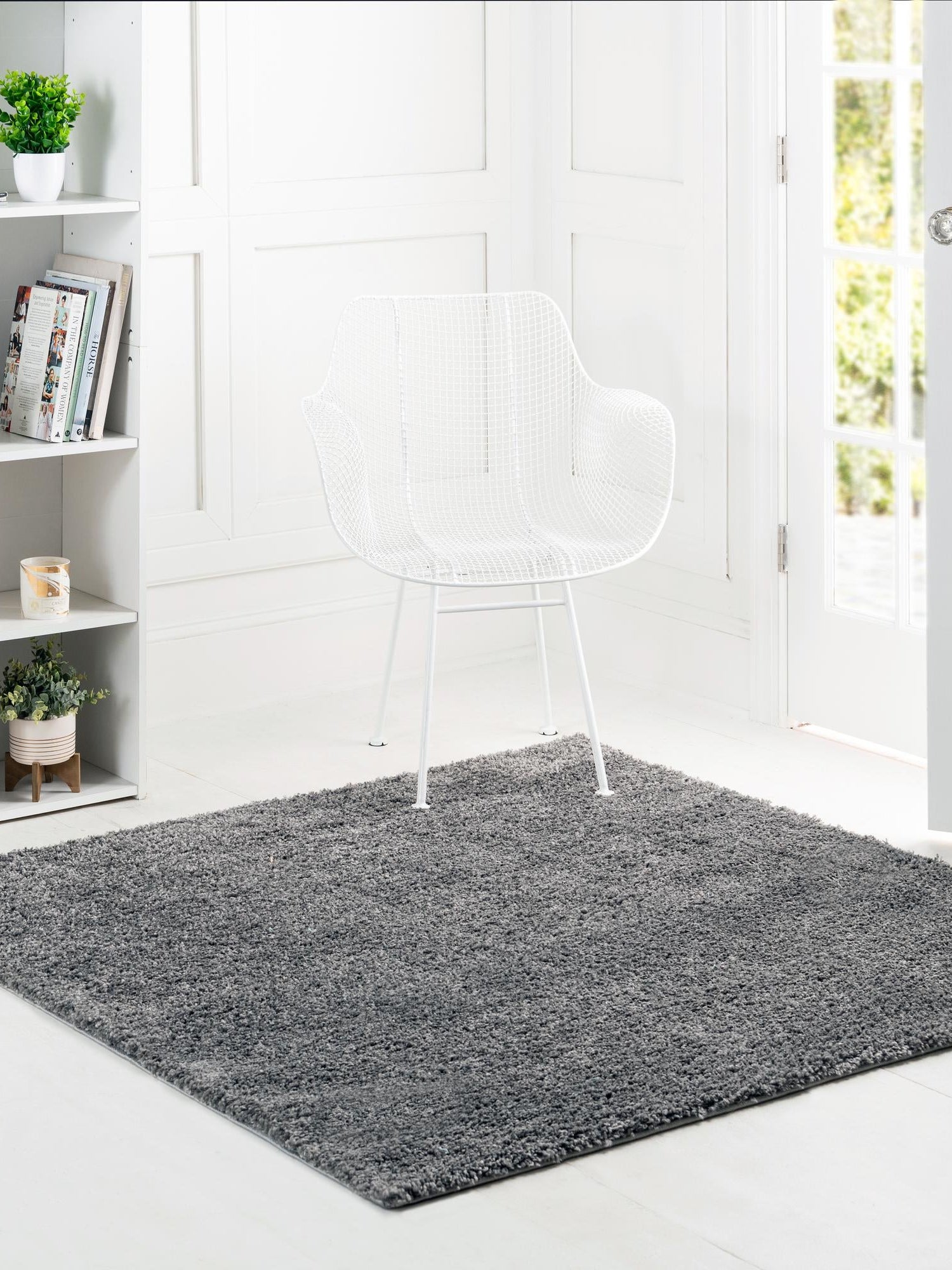 Pebble Gray 4' 1 x 4' 1 Soft Solid Shag Square Area Rug Thick Soft Touch Fluffy & Plush Shaggy Pile