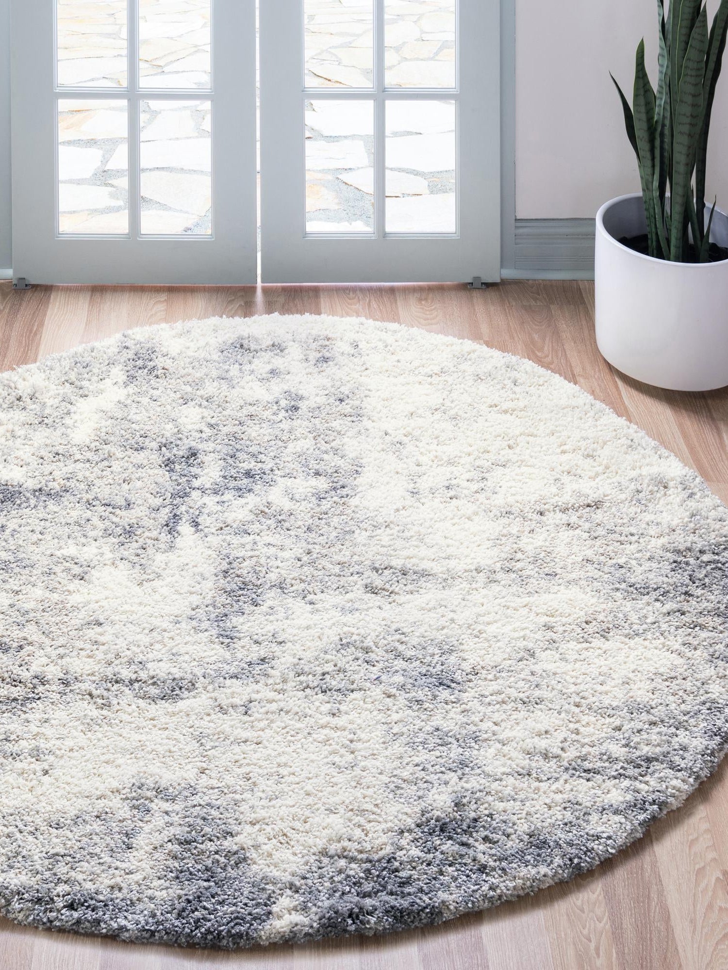 Pebble Gray 5' 3 x 5' 3 Soft Touch Shag Round Area Rug Thick Soft Touch Fluffy & Plush Shaggy Pile