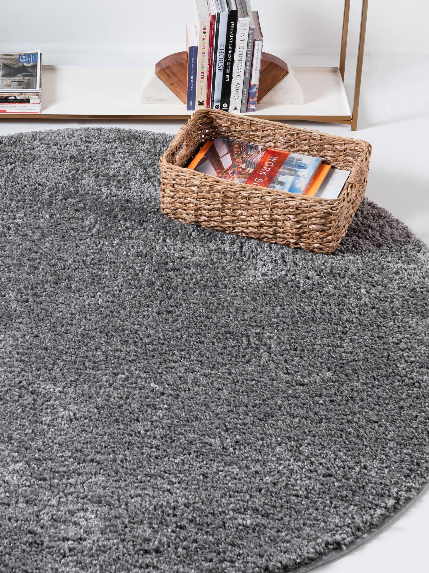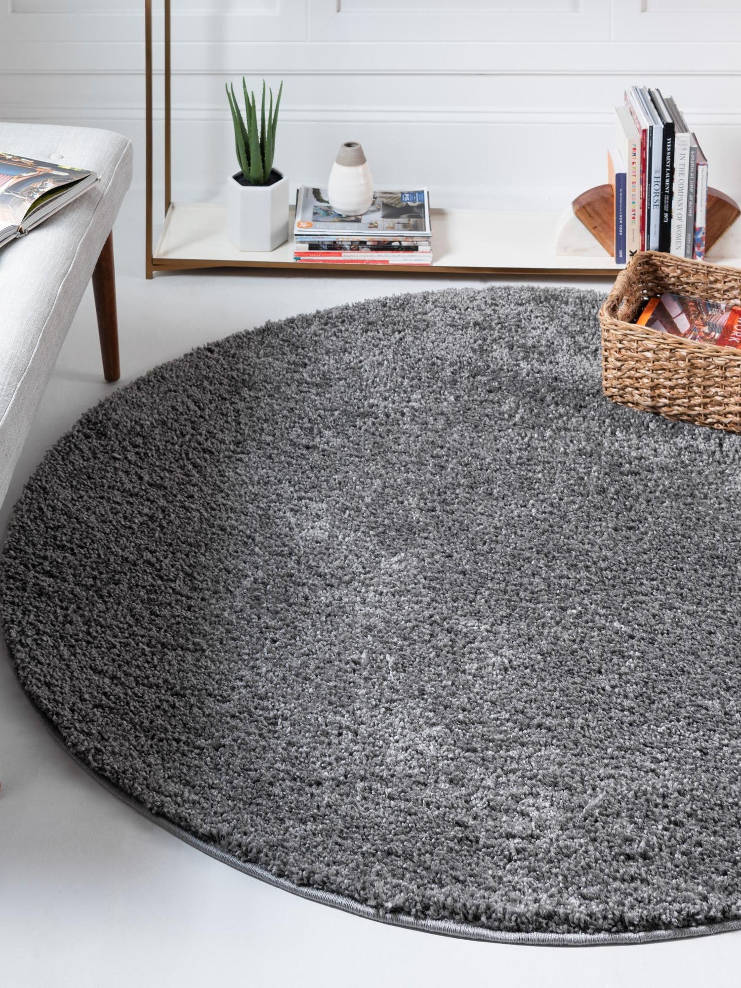 Pebble Gray 6' 1 x 6' 1 Soft Solid Shag Round Area Rug Thick Soft Touch Fluffy & Plush Shaggy Pile