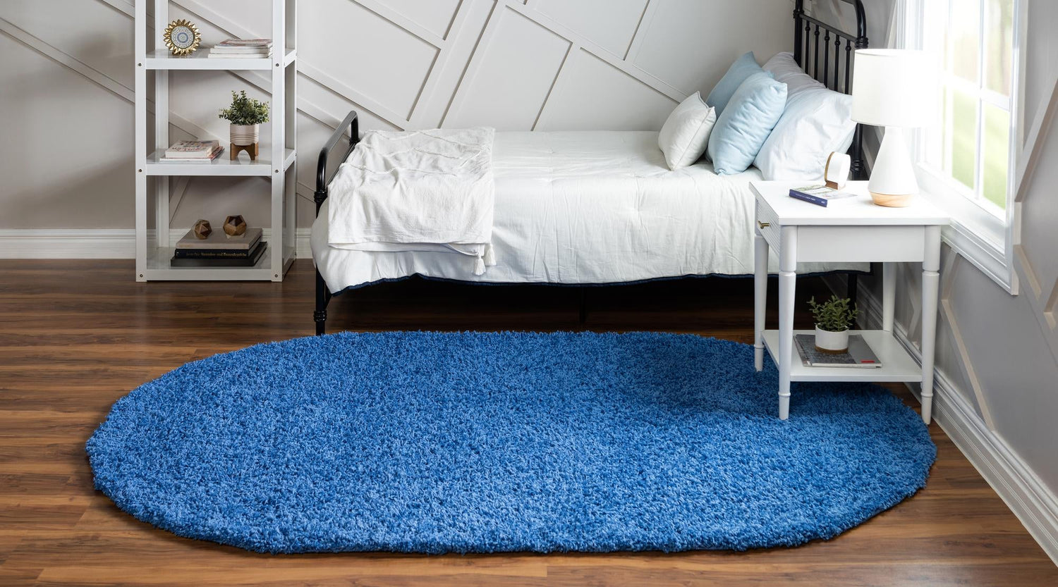 Periwinkle Blue 5' 3 x 8' Solid Shag Oval Area Rug Thick Soft Touch Fluffy & Plush Shaggy Pile
