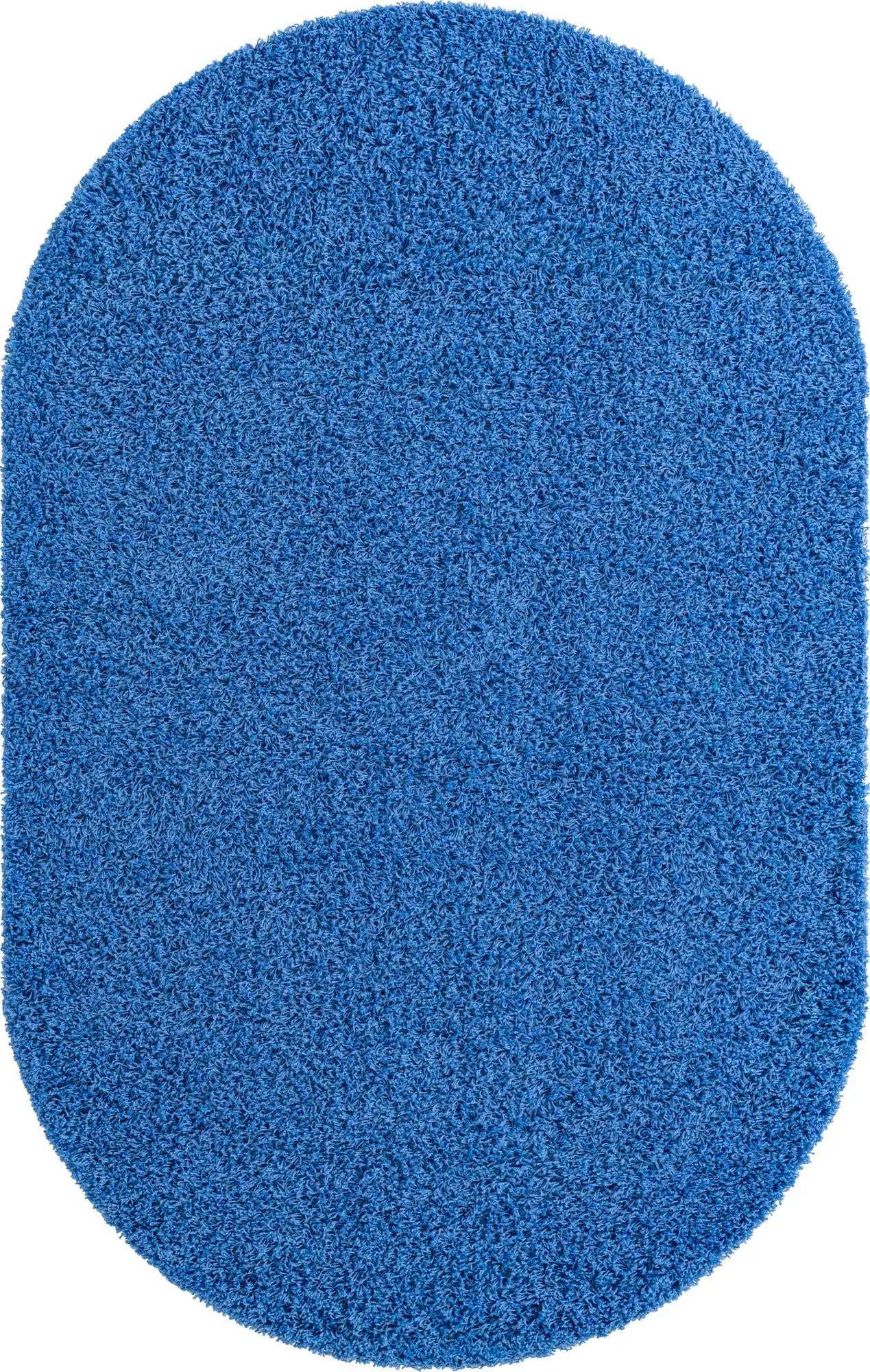 Periwinkle Blue 5' 3 x 8' Solid Shag Oval Area Rug Thick So...