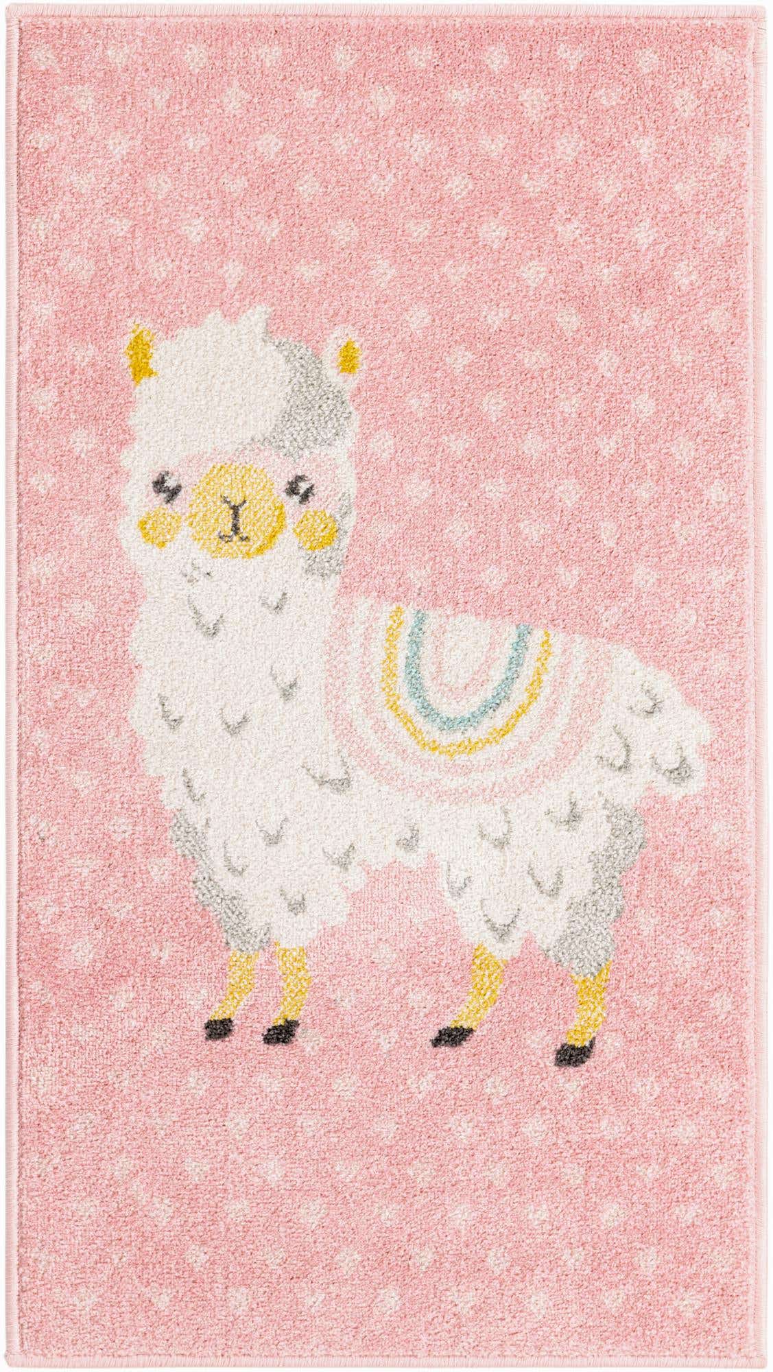 Pink 2' 2 x 3' 11 Whimsy Kids Runner Area Rug for Baby Nursery, Toddler Playroom, Bedrooms