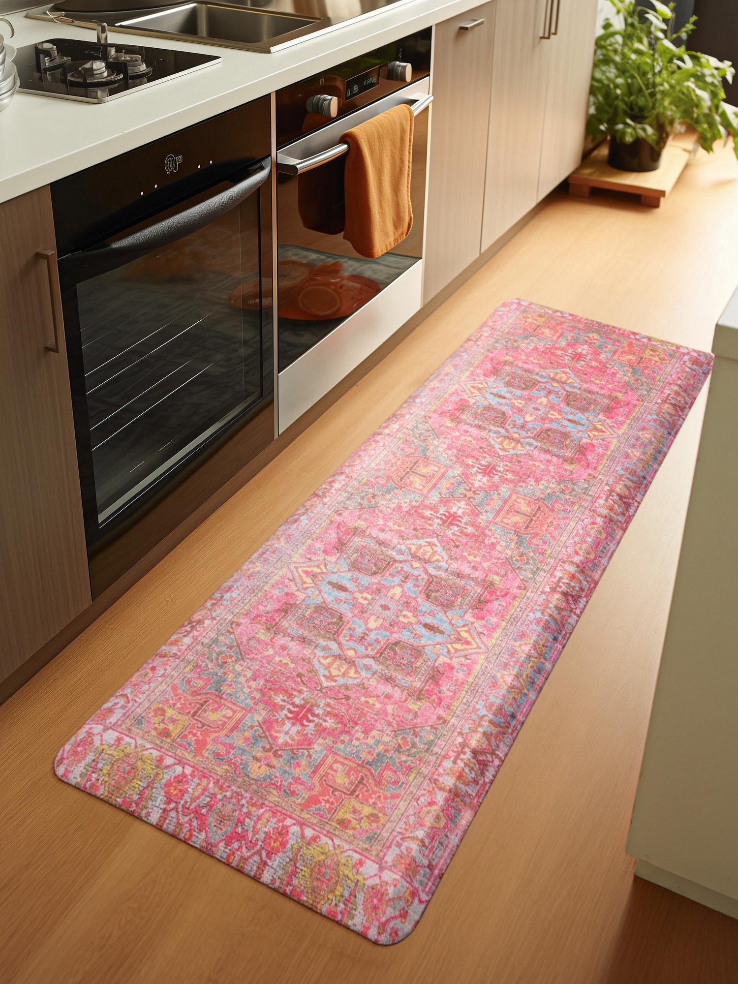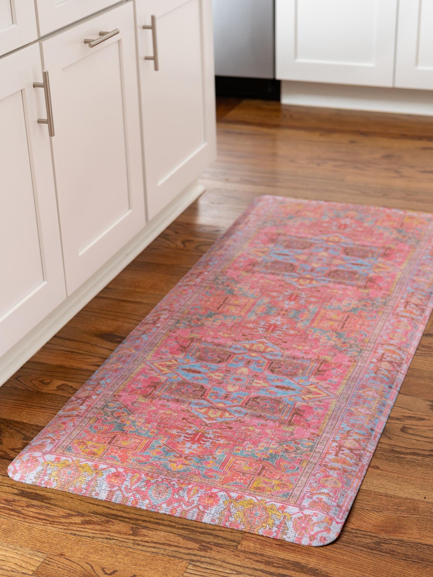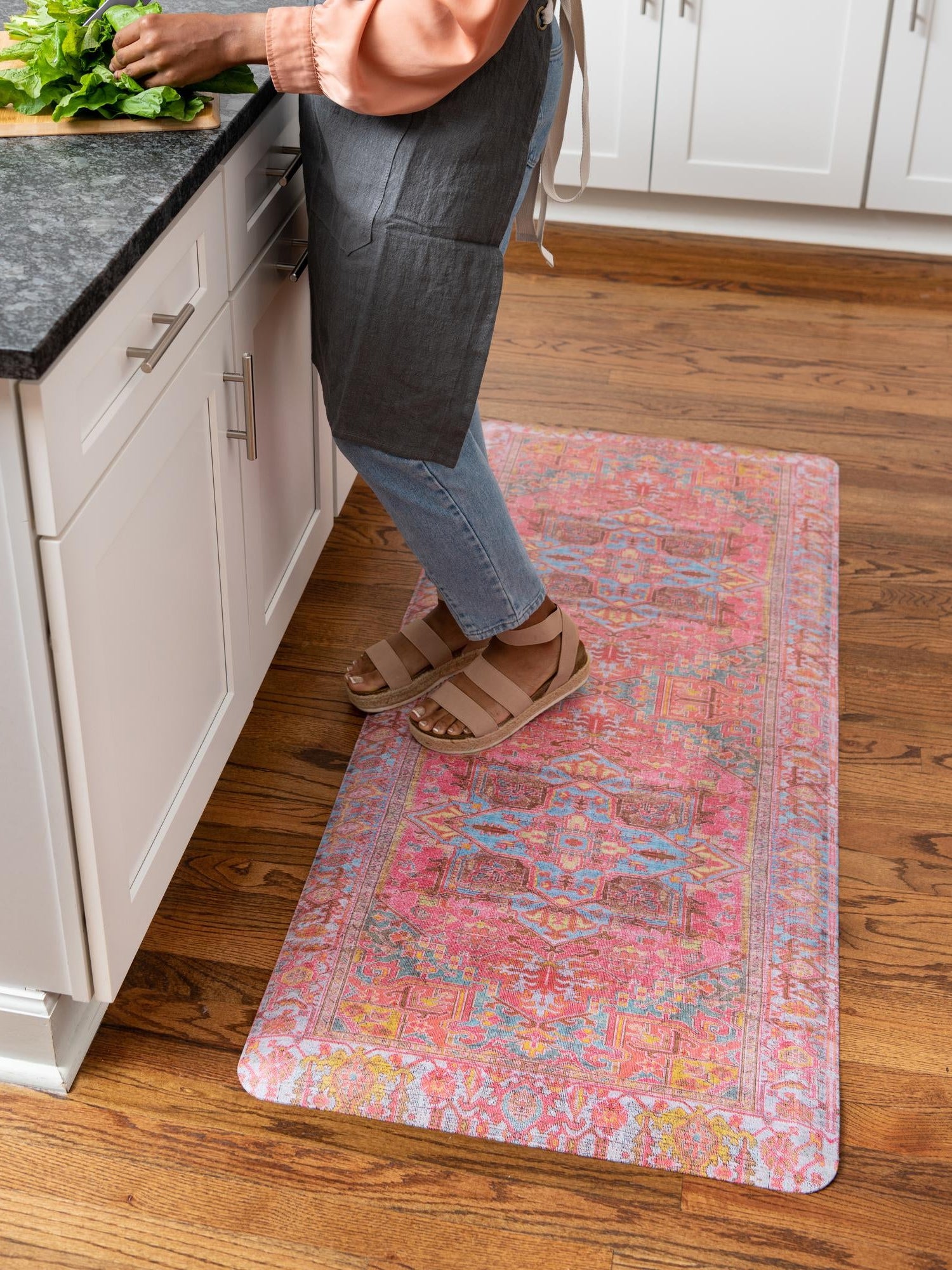 Anti-Fatigue Pink 2' x 5' Comfort Standing Mat for Kitchen, Bath, Laundry Room, Office Colorful PVC Durable Non-Slip Water Resistant Spill Proof Rug Thick Rubber