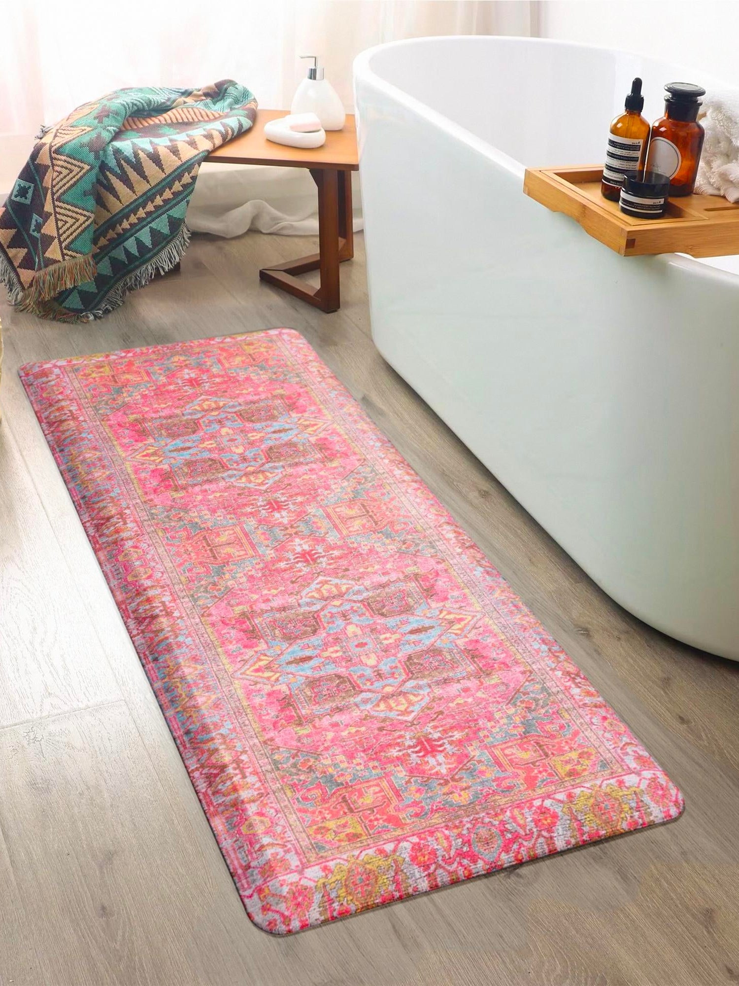 Washable Beige and pink 2' x 5' Mangata Runner Area Rug Easy to Clean Stain Resistant & Durable