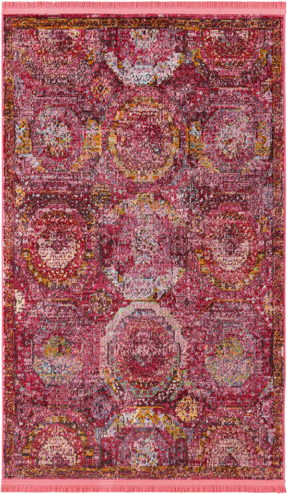 Pink 3' 3 x 5' 3 Baracoa Rectangle Area Rug 100% Polypropylene Distressed Vintage Living Dining Room Office Traditional Carpet