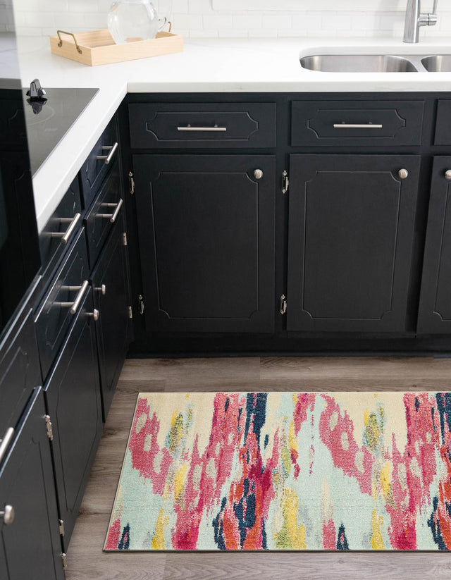 Pink 2' 7 x 10' Estrella Runner Area Rug 100% Polypropylene Non-Shedding Stain Resistant Carpet Colorful Modern Abstract Design Easy Clean for Home Decor