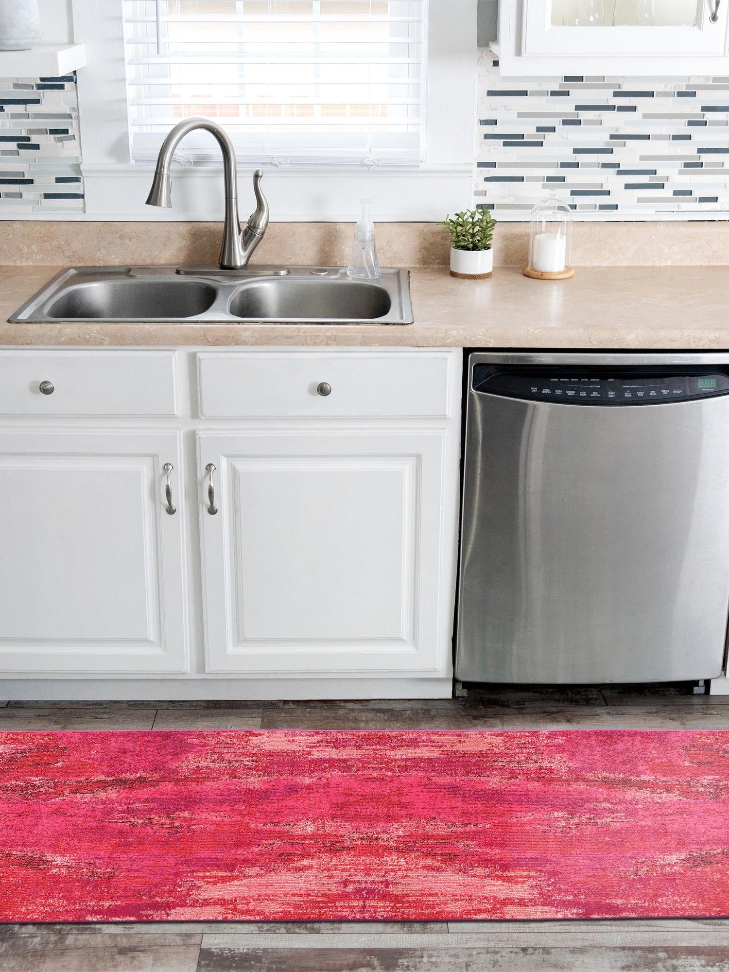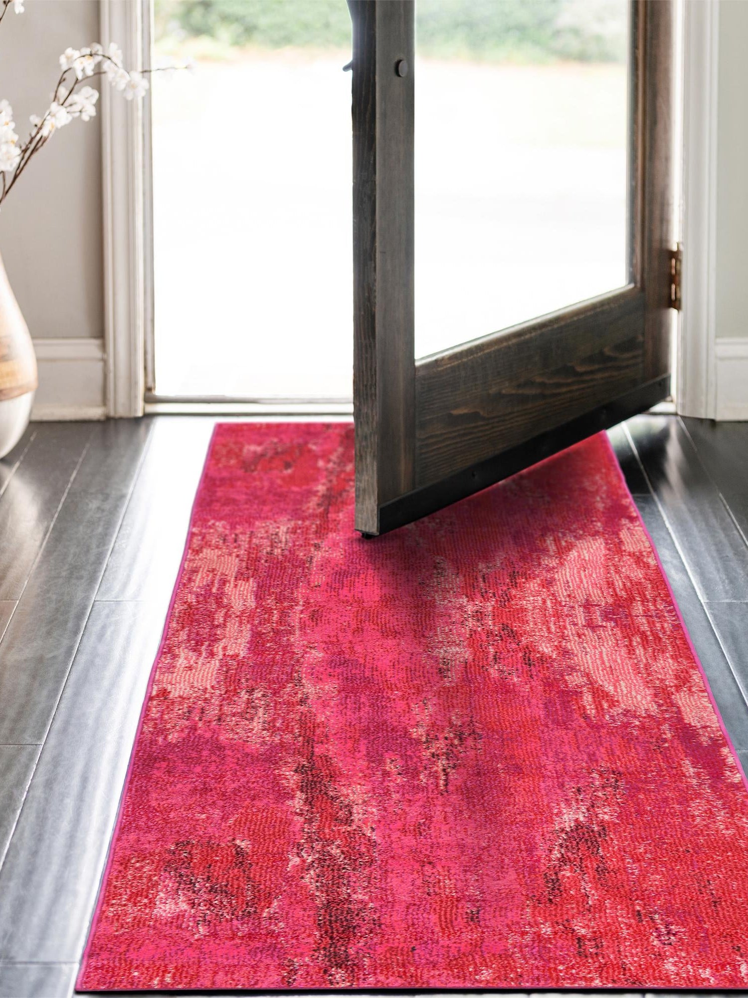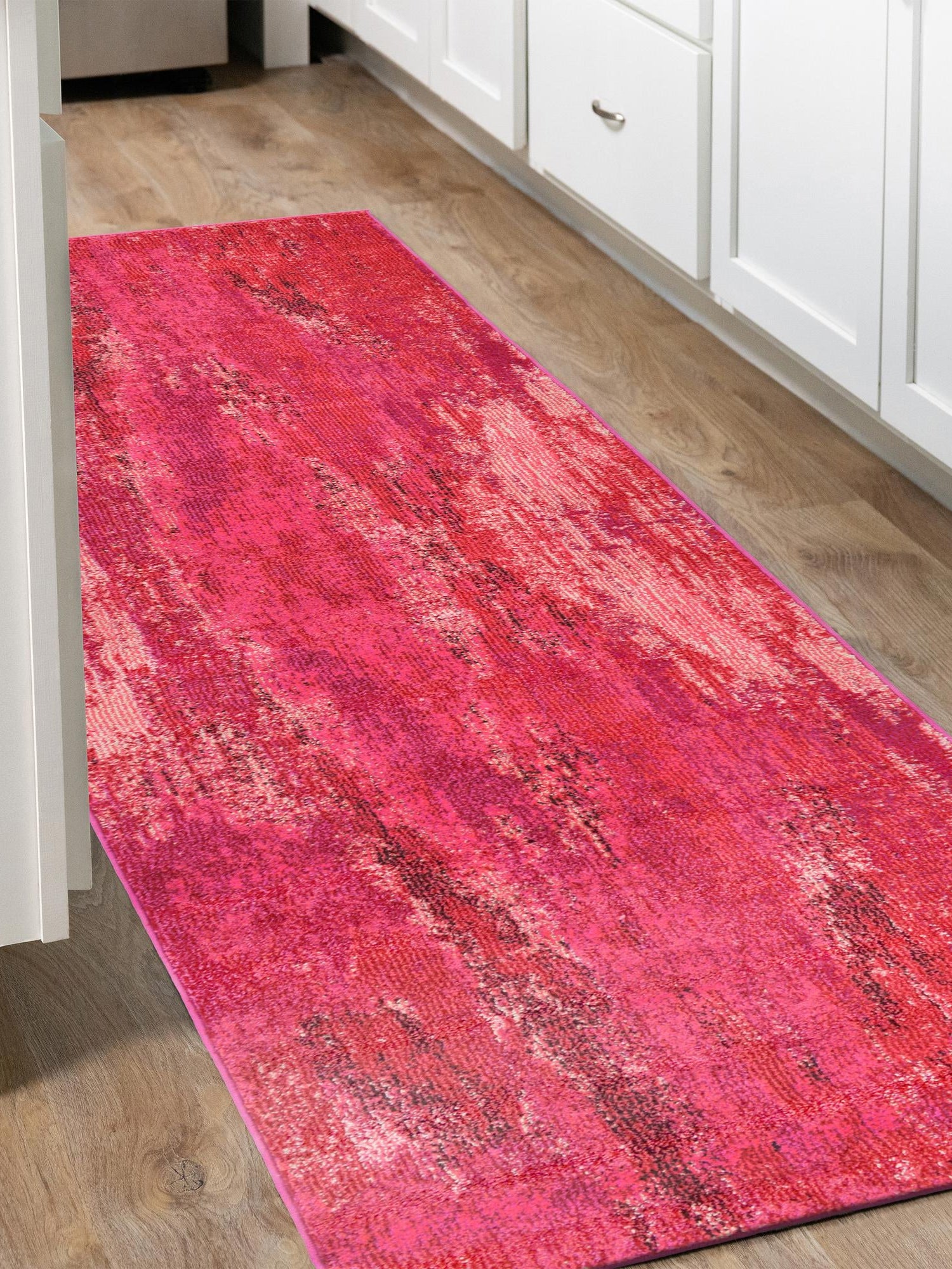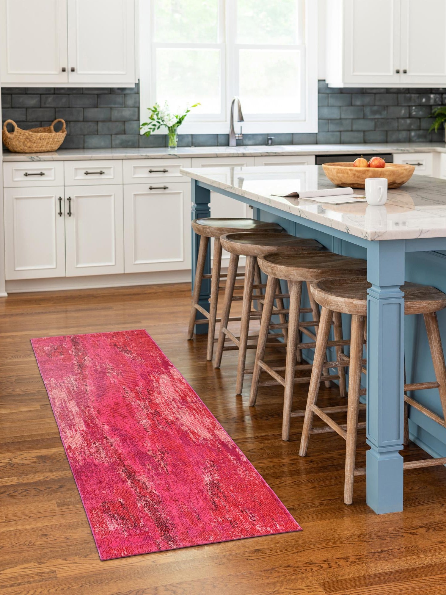 Pink 2' 7 x 10' Jardin Runner Area Rug 100% Polypropylene With Cotton Backing Colorful & Vivid Modern Carpet for Home Decor