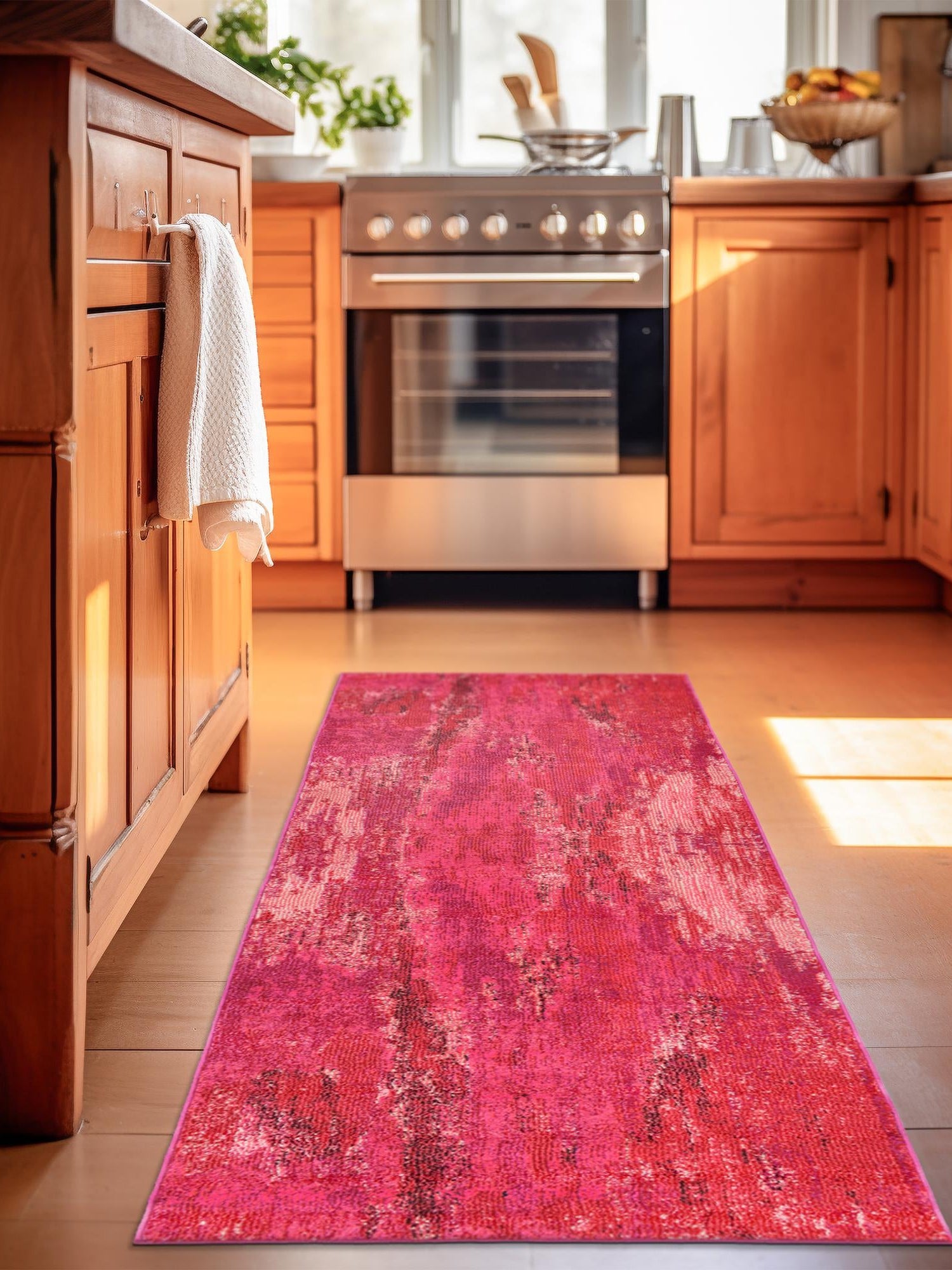 - Vibrant Pink Color: The stunning pink hue of the rug brings a splash of color and liveliness to your space. This vibrant shade can effortlessly elevate your home decor, making it a perfect focal point or accent piece. Combine it with neutral tones for a chic contrast or pair with complementary colors for a harmonious look.