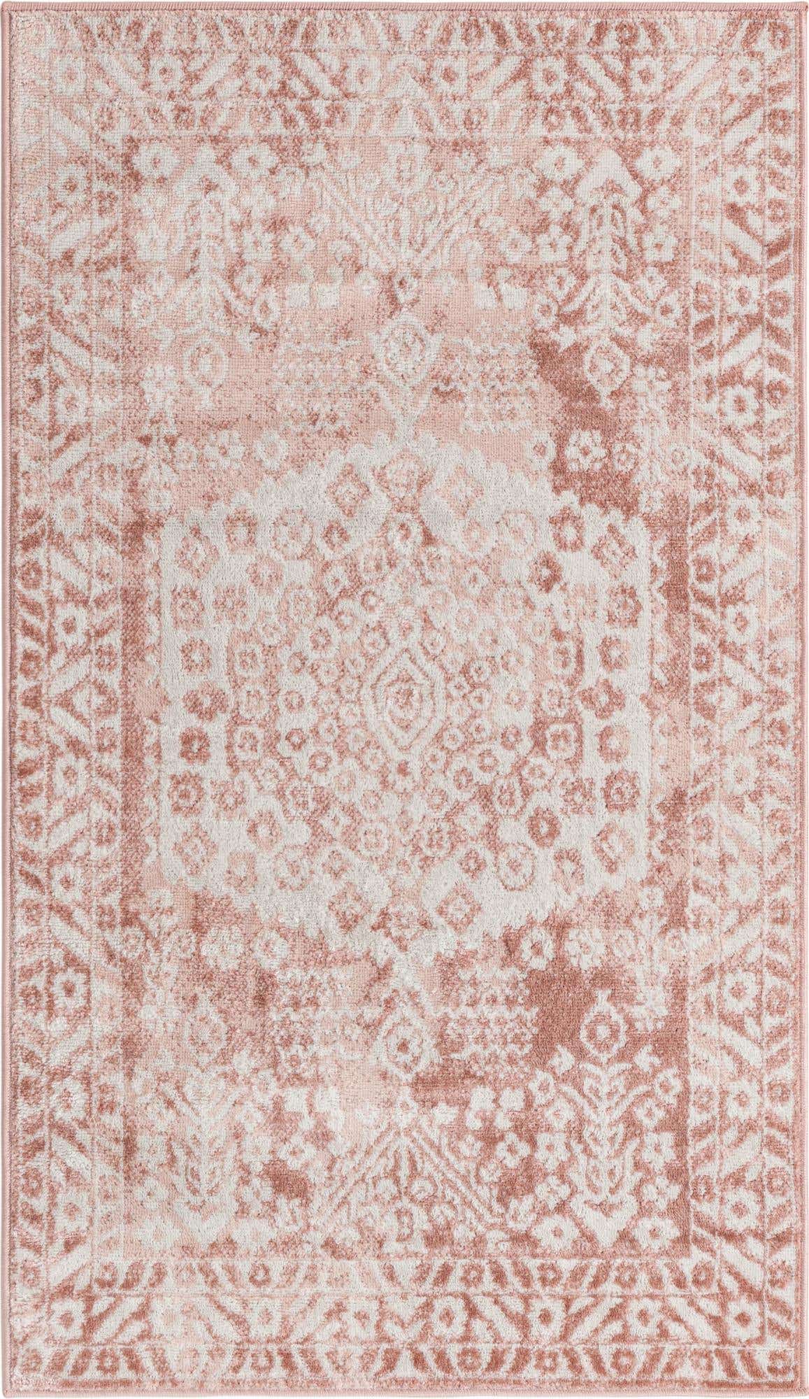 Washable Beige and pink 2' x 5' Mangata Runner Area Rug Easy to Clean Stain Resistant & Durable