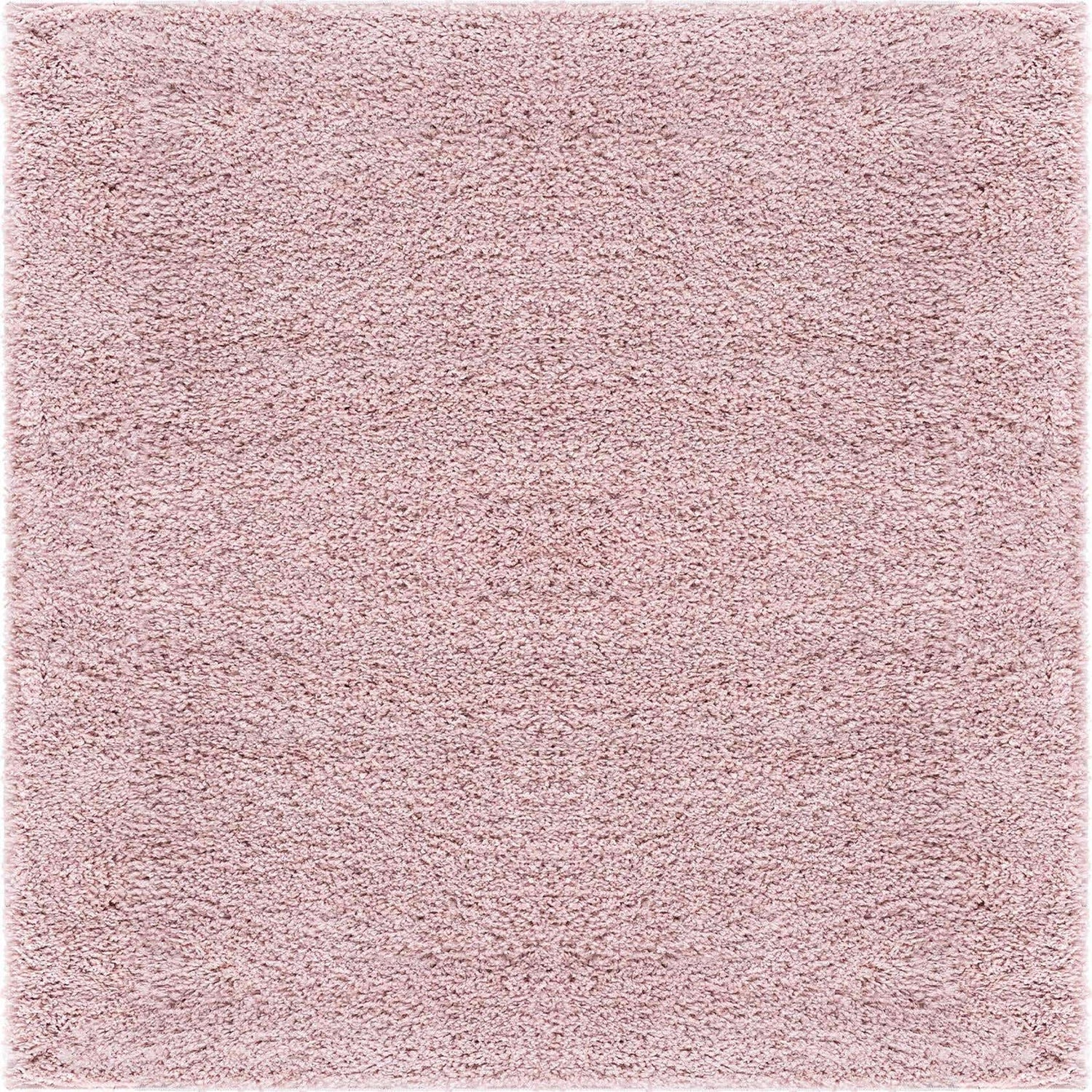 Pink 4' 1 x 4' 1 Soft Solid Shag Square Area Rug Thick Soft Touch Fluffy & Plush Shaggy Pile