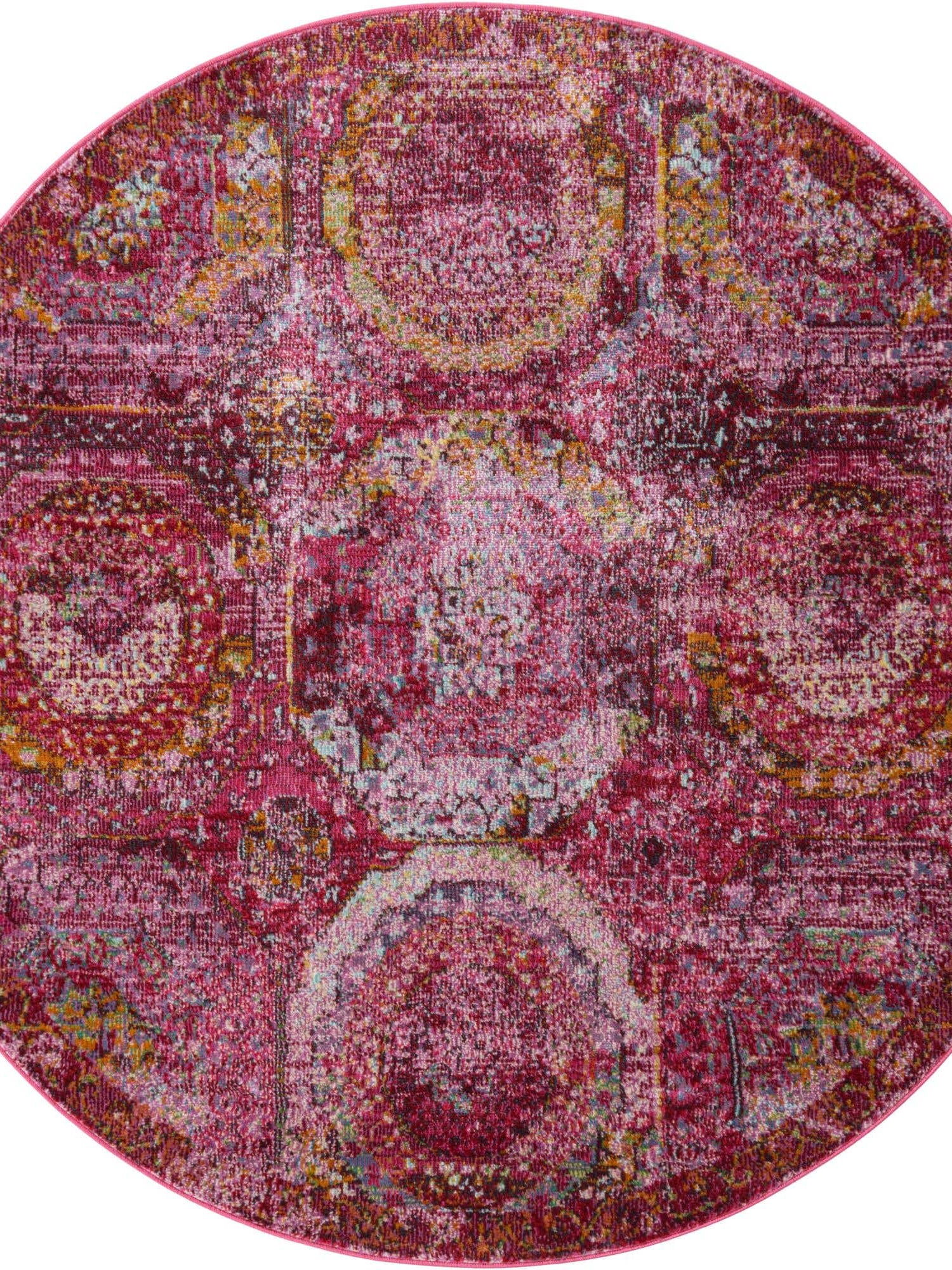 Pink 4' x 4' Baracoa Round Area Rug 100% Polypropylene Distressed Vintage Living Dining Room Office Traditional Carpet