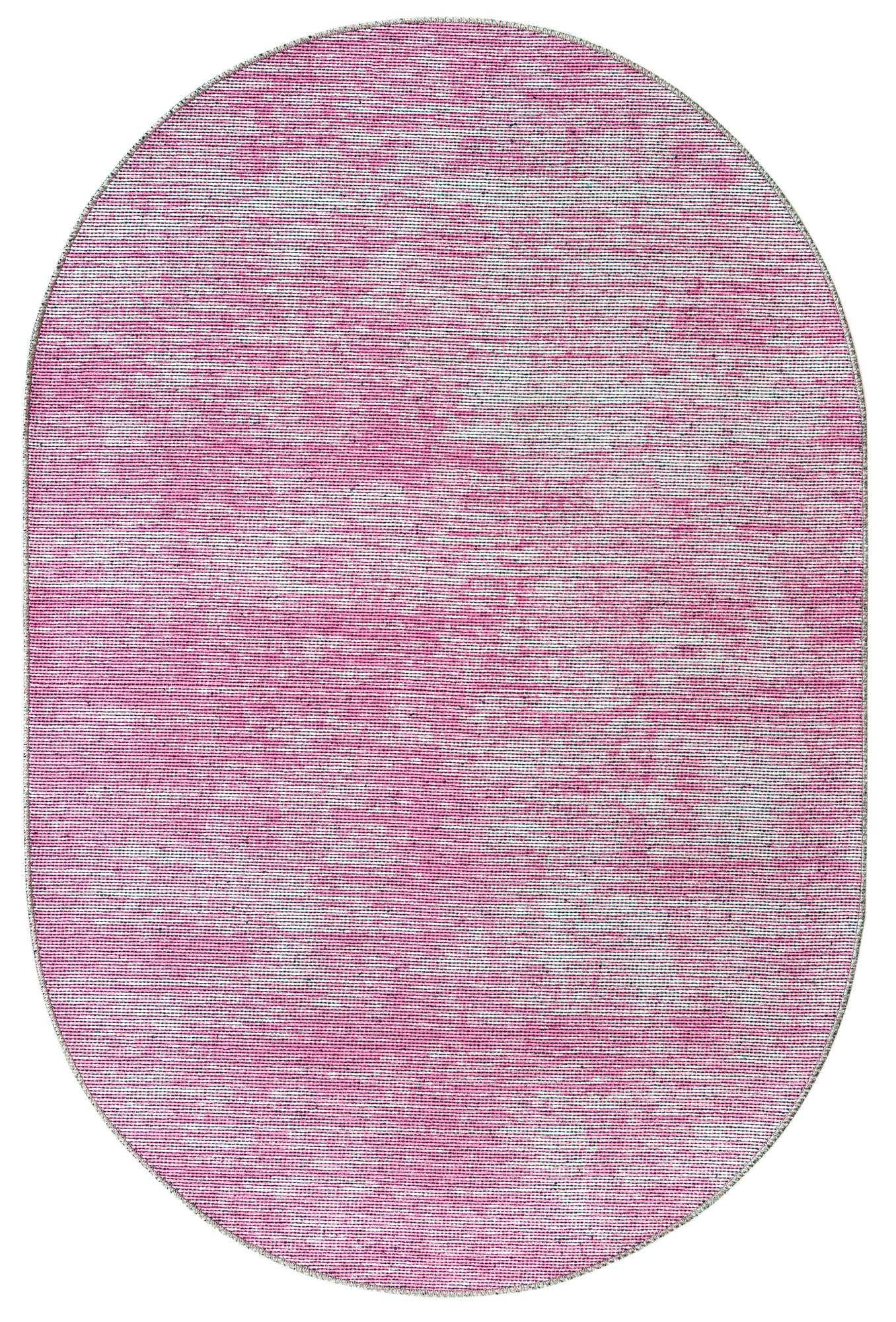 Pink 3' 6 x 5' 6 Asha Oval Area Rug 100% Chenille Cotton Easy Clean Indoor Living Dining Bedroom Office Carpet
