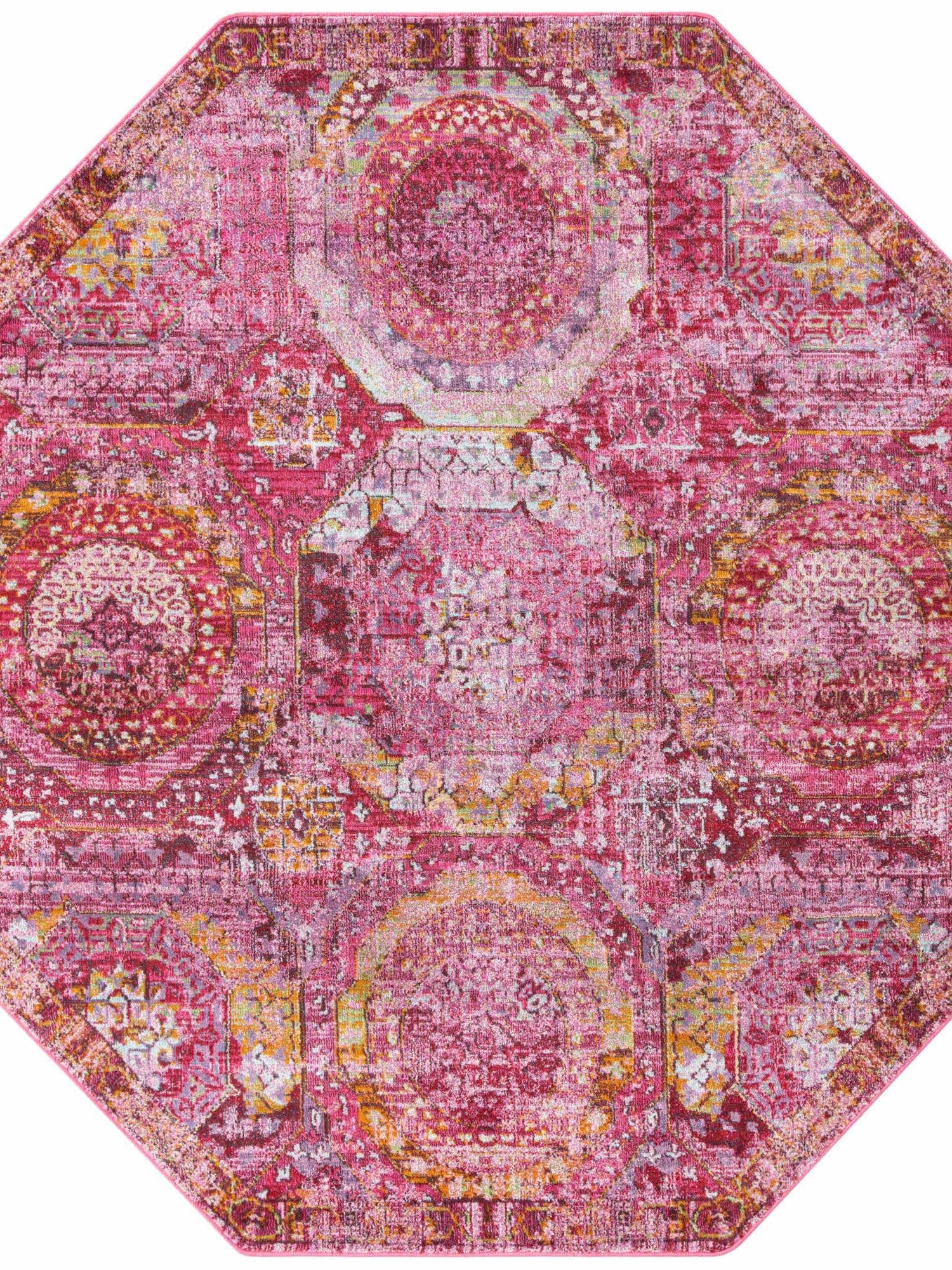 Pink 5' 3 x 5' 3 Baracoa Octagon Area Rug 100% Polypropylene Distressed Vintage Living Dining Room Office Traditional Carpet