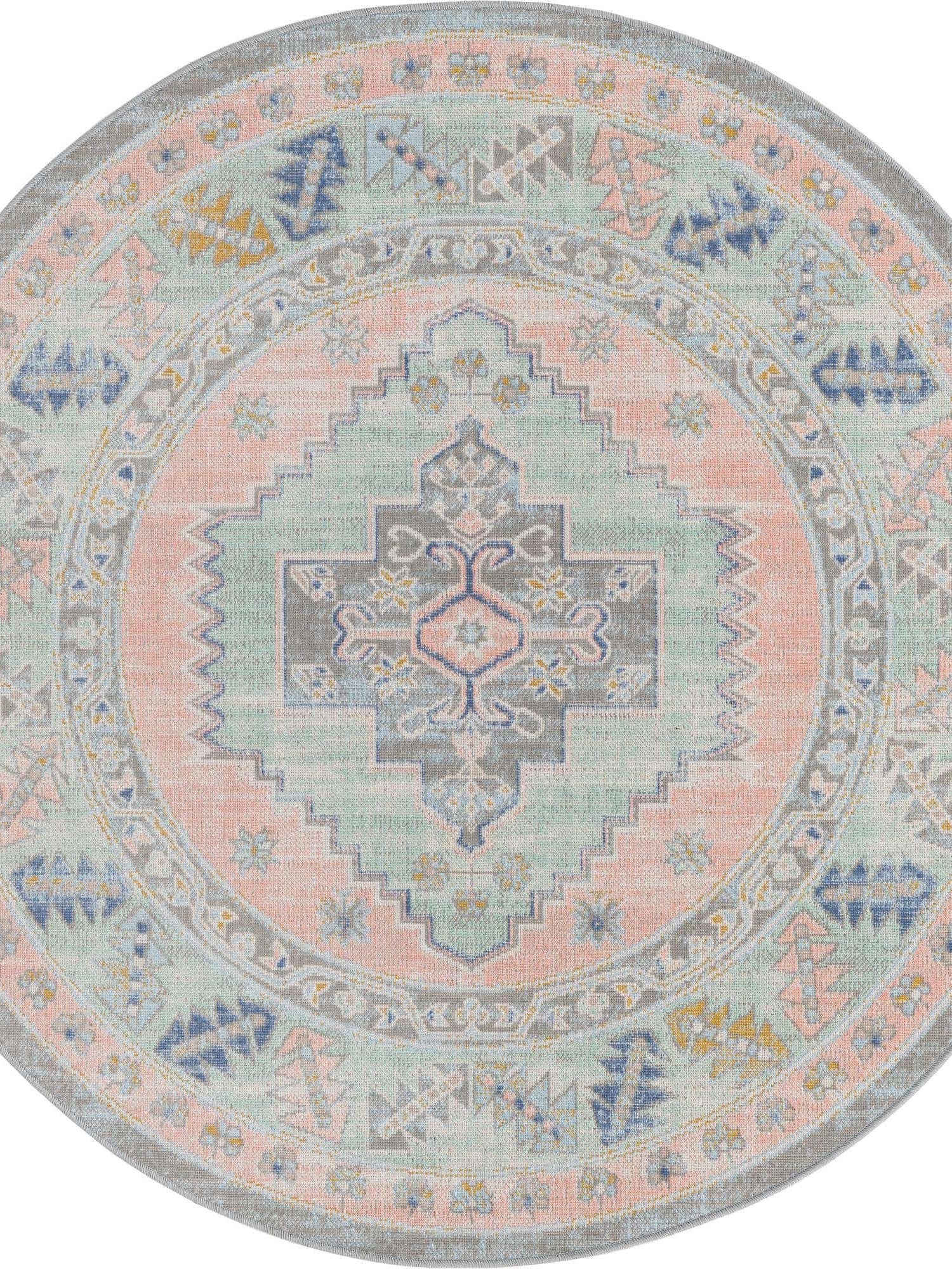 Washable Multicolor 5' x 5' Timeless Round Area Rug Easy to Clean Stain Resistant & Durable