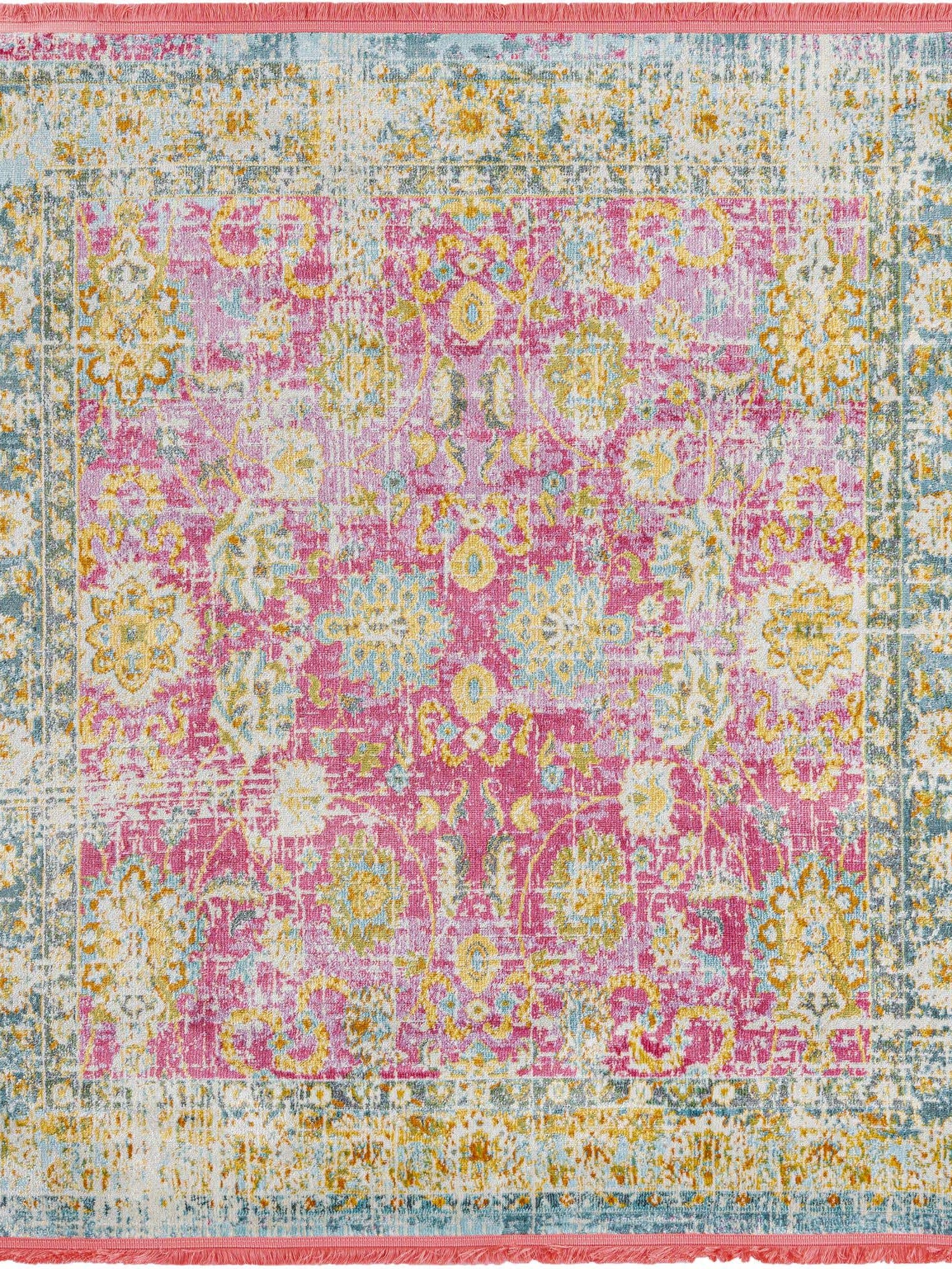 Pink 5' 5 x 5' 5 Paragon Square Area Rug 100% Polypropylene Colorful Vivid Boho Style Modern Carpet for Unique Interiors