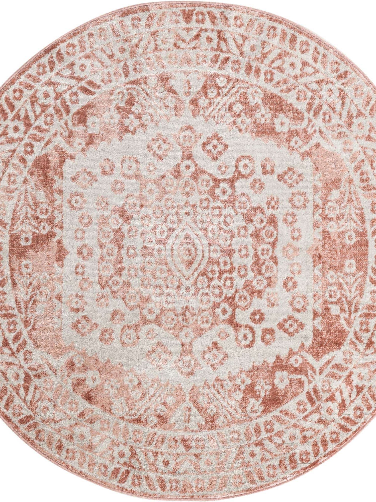 Washable Vintage Rust Red 2' x 2' Timeless Round Area Rug Easy to Clean Stain Resistant & Durable