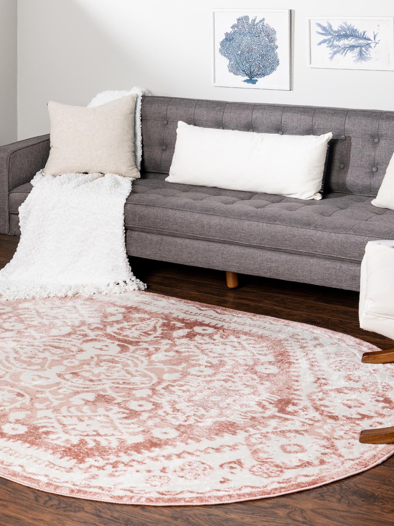 Washable Gray 2' x 2' Timeless Round Area Rug Easy to Clean Stain Resistant & Durable