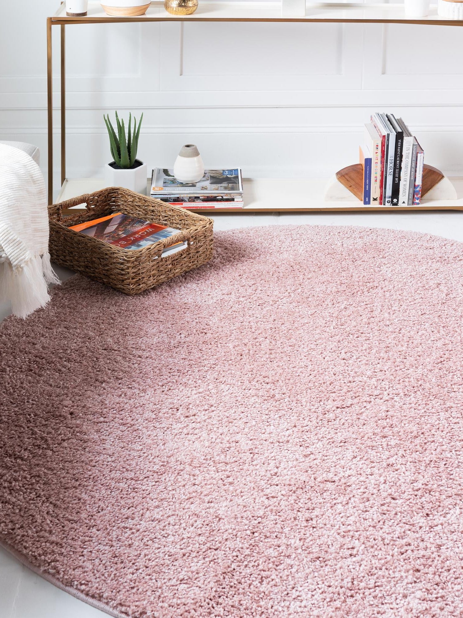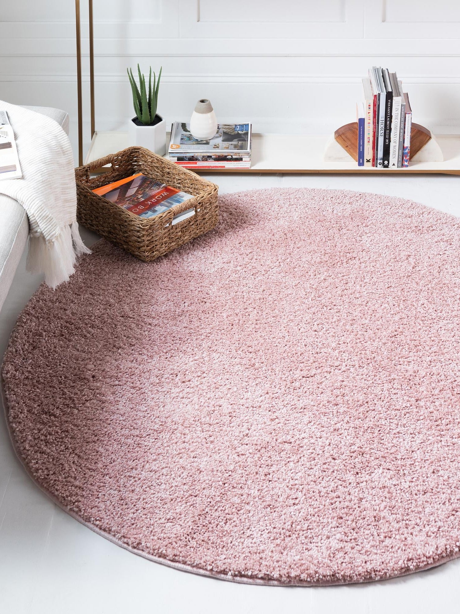 Pink 6' 1 x 6' 1 Soft Solid Shag Round Area Rug Thick Soft Touch Fluffy & Plush Shaggy Pile