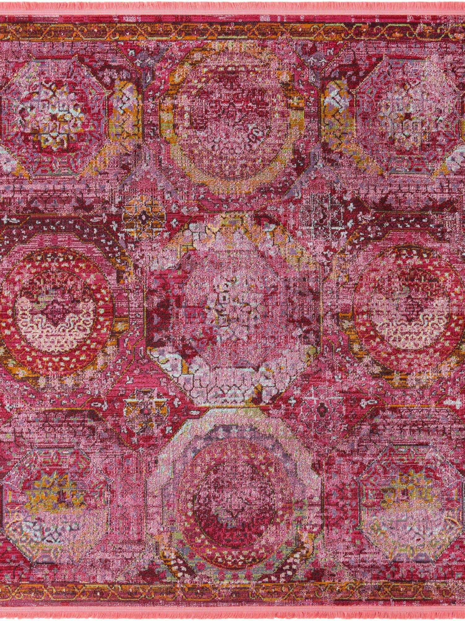 Pink 7' 1 x 7' 1 Baracoa Square Area Rug 100% Polypropylene Distressed Vintage Living Dining Room Office Traditional Carpet