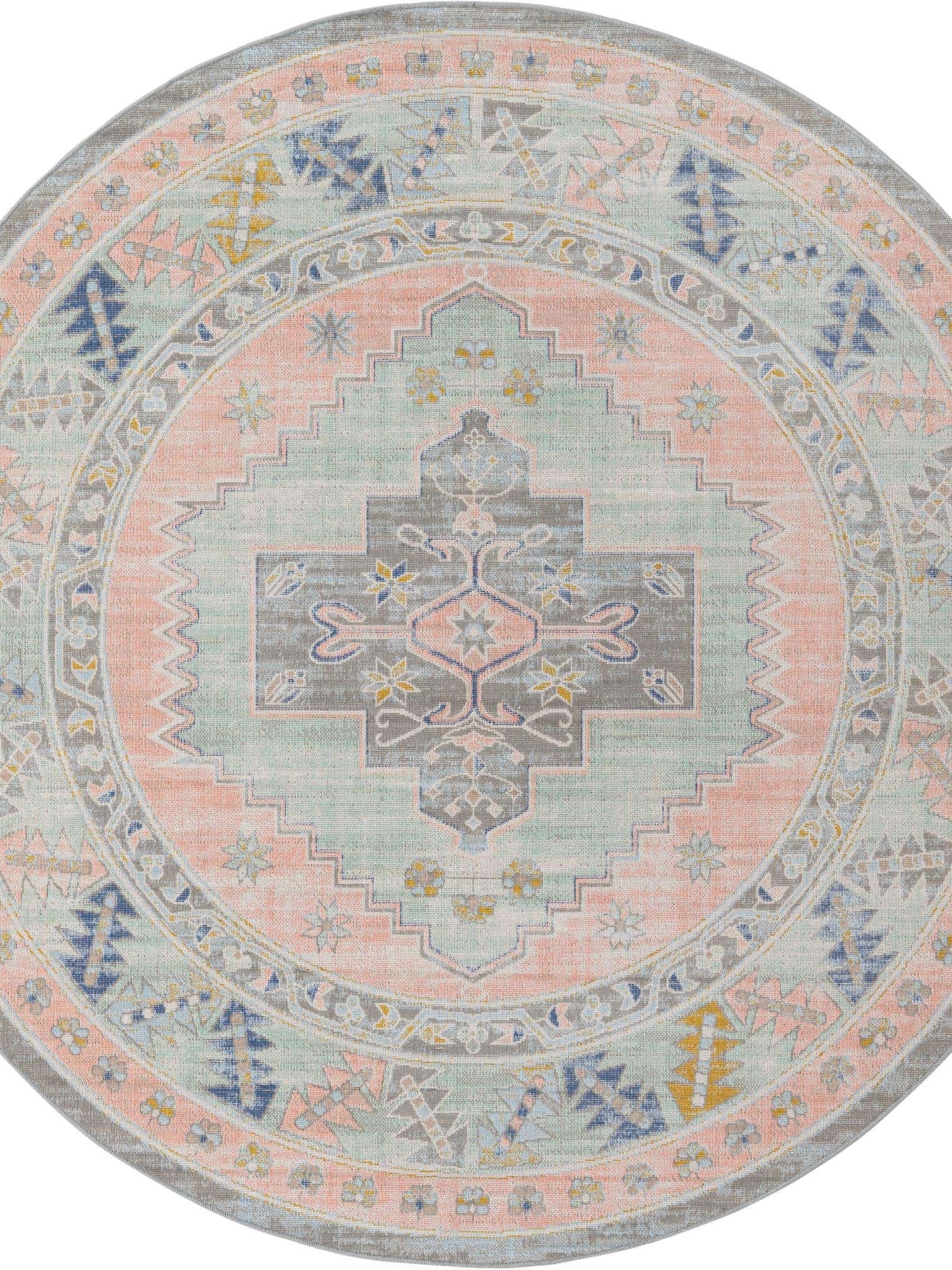 Washable Multicolor 5' x 5' Timeless Round Area Rug Easy to Clean Stain Resistant & Durable
