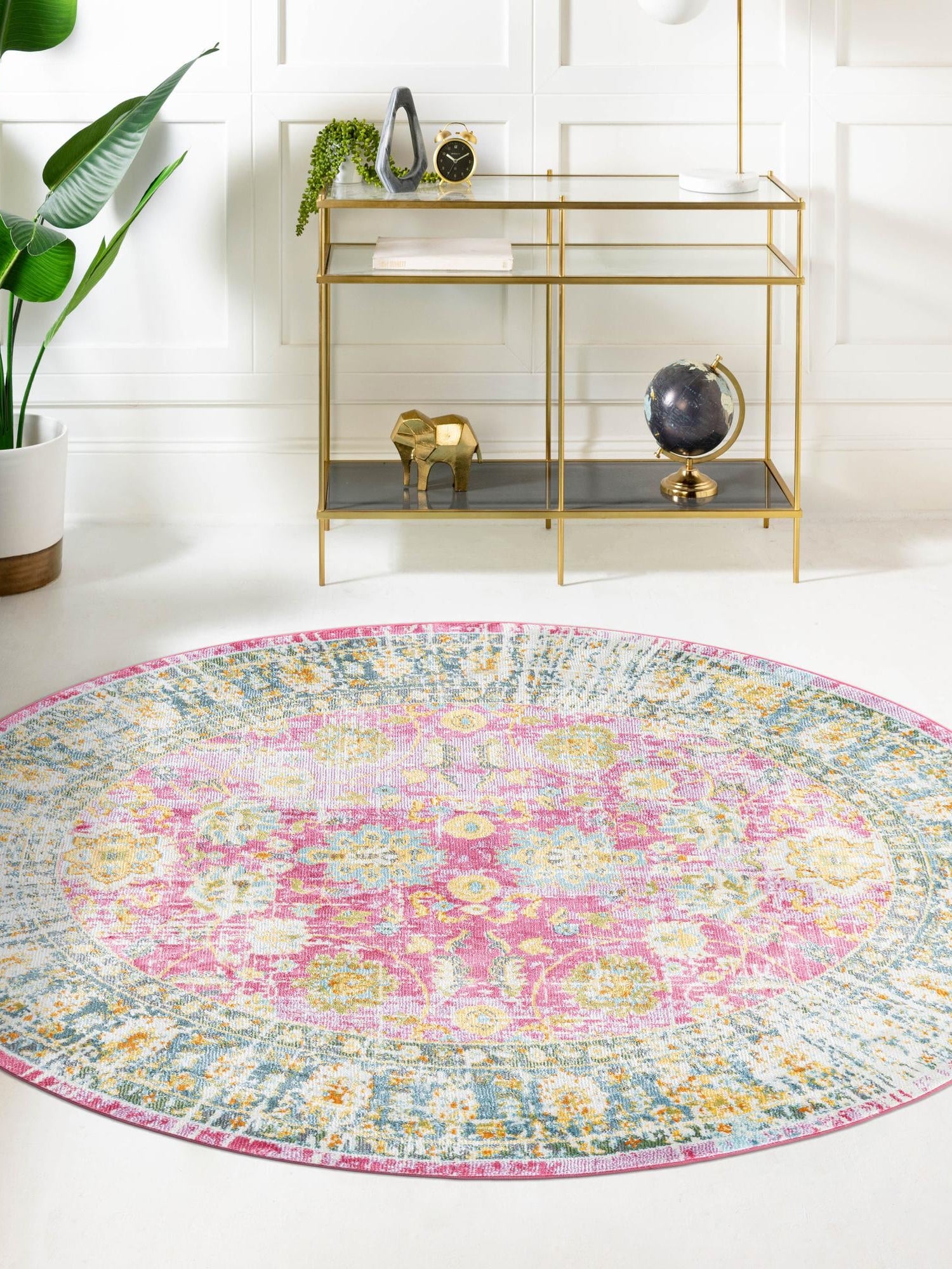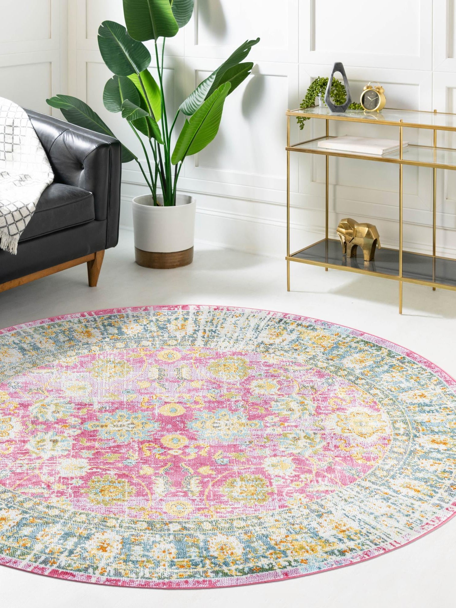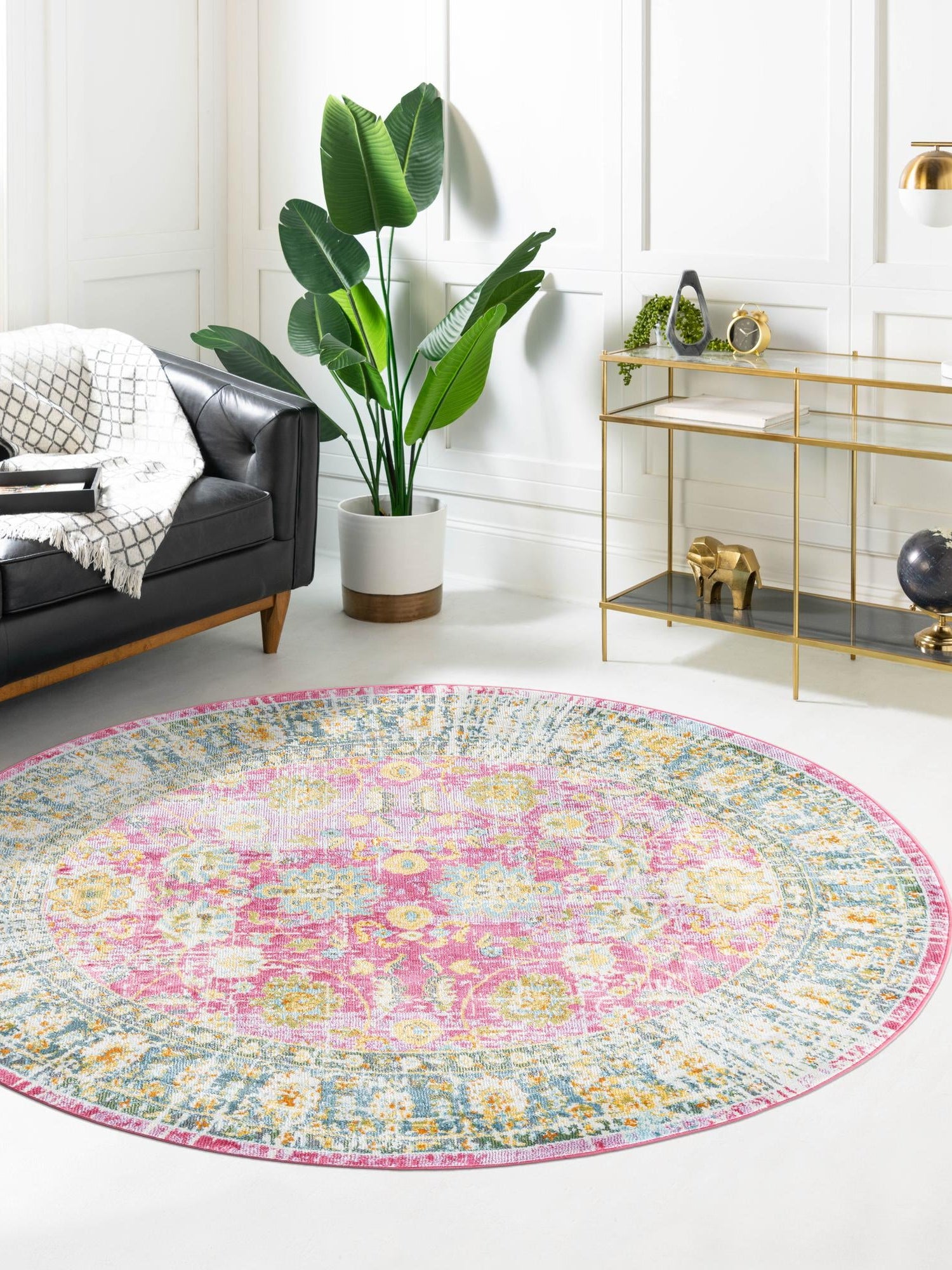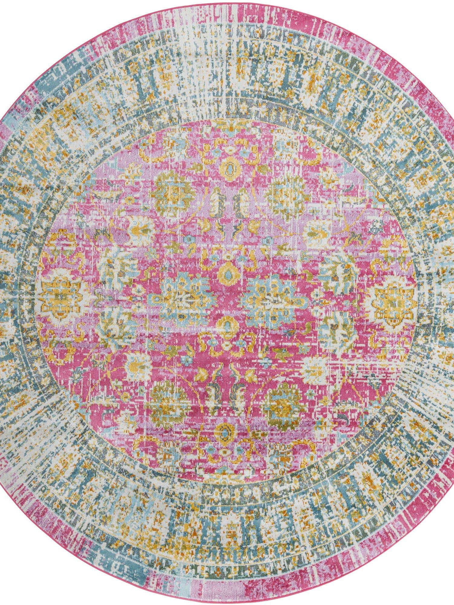 Pink 8' 2 x 8' 2 Paragon Round Area Rug 100% Polypropylene Colorful Vivid Boho Style Modern Carpet for Unique Interiors