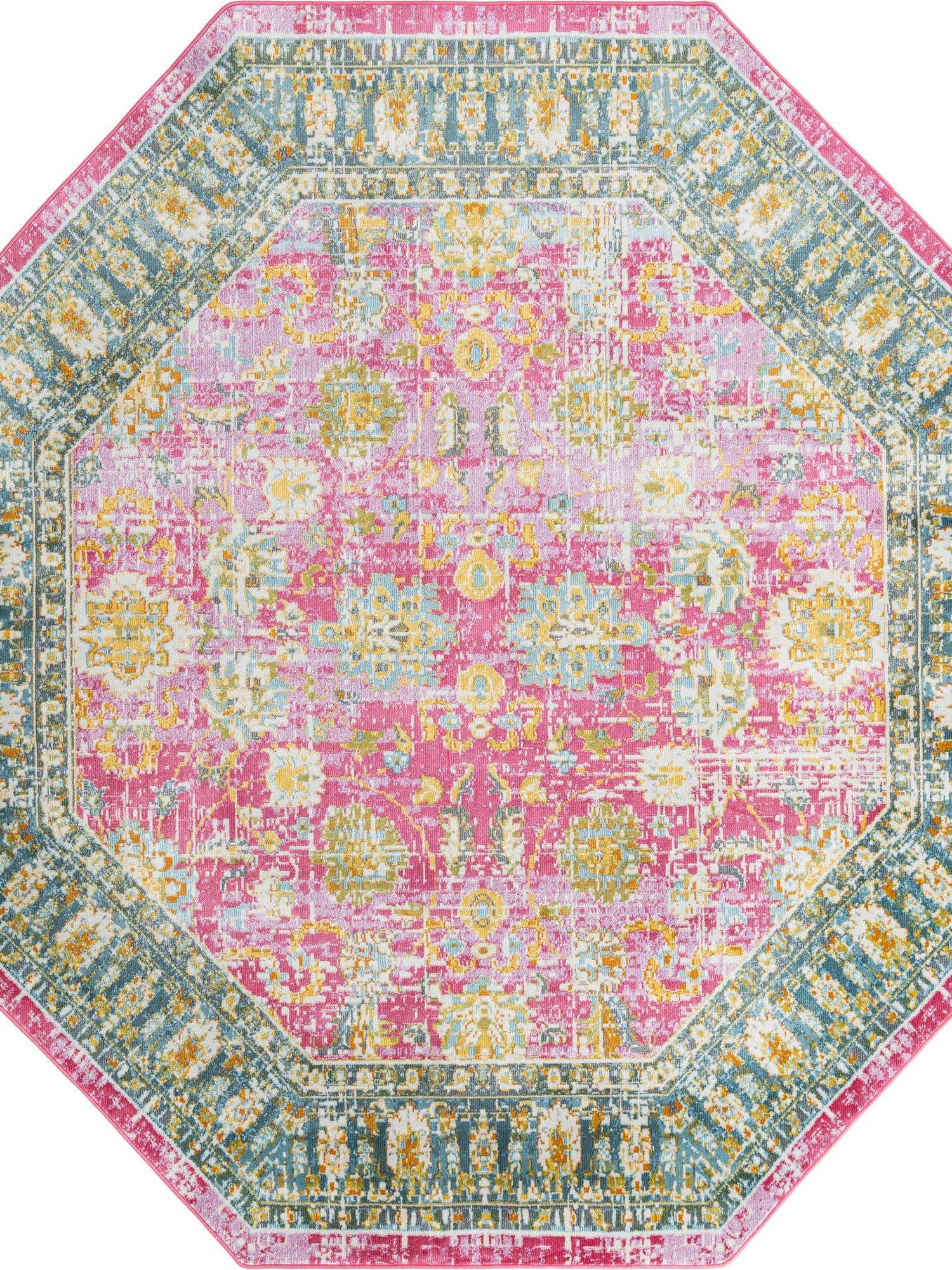Pink 8' 2 x 8' 2 Paragon Octagon Area Rug 100% Polypropylene Colorful Vivid Boho Style Modern Carpet for Unique Interiors