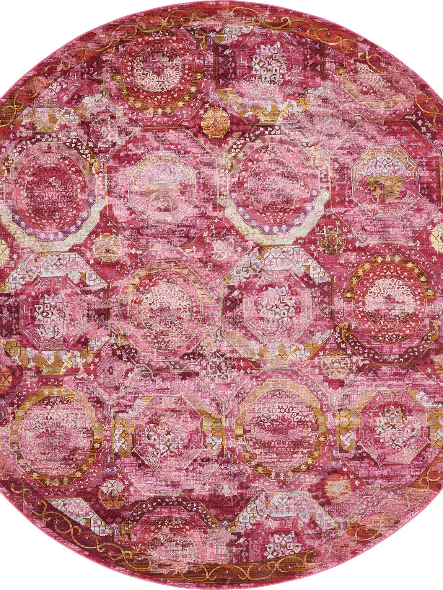 Pink 8' x 8' Baracoa Round Area Rug 100% Polypropylene Distressed Vintage Living Dining Room Office Traditional Carpet