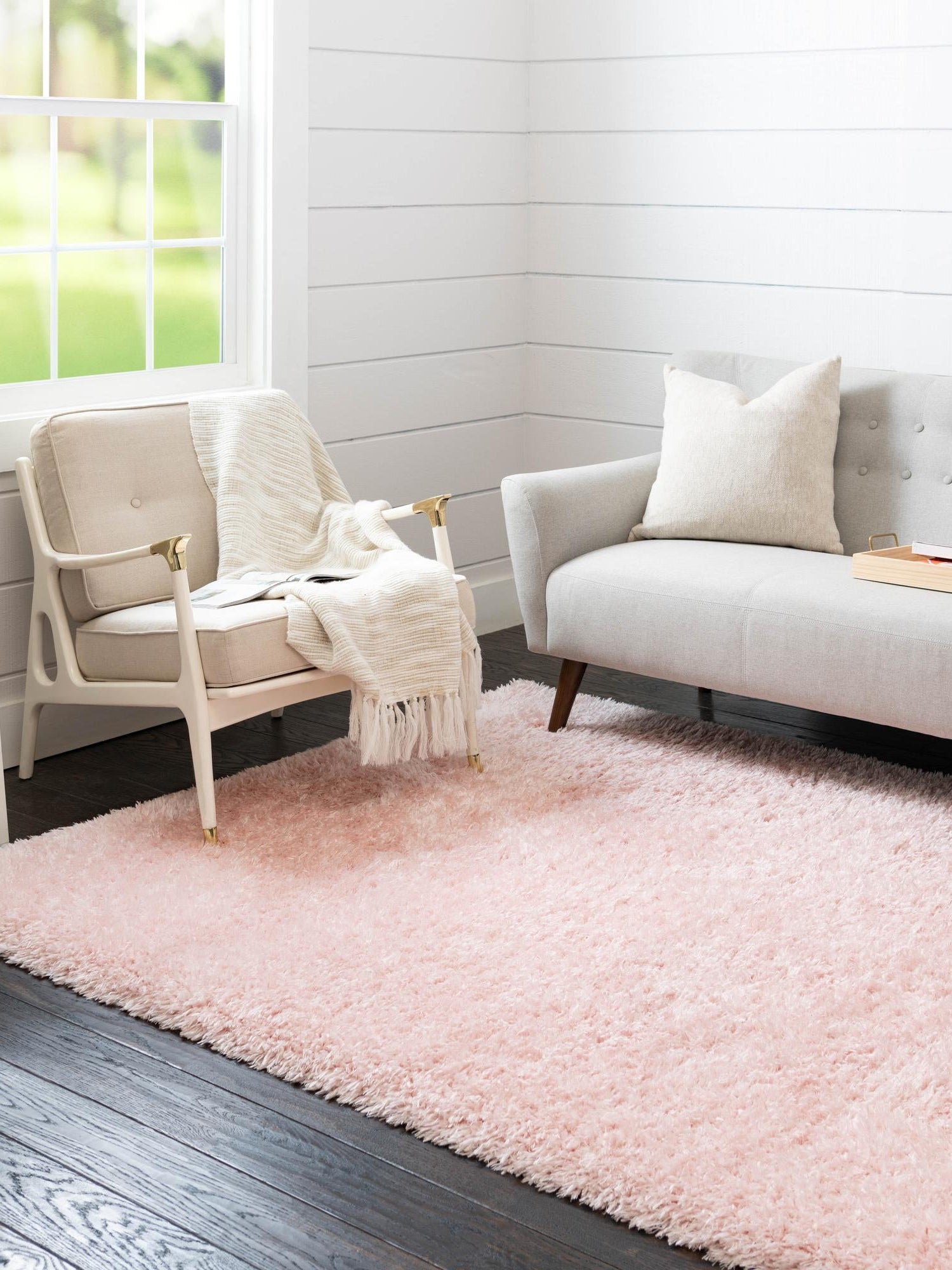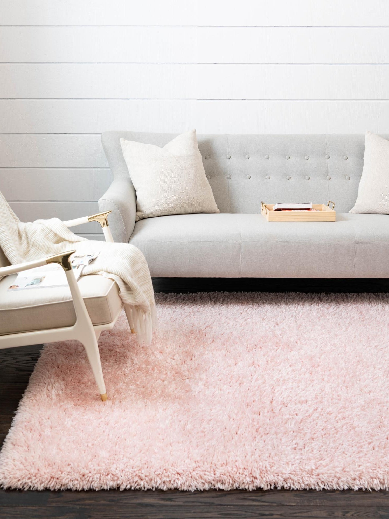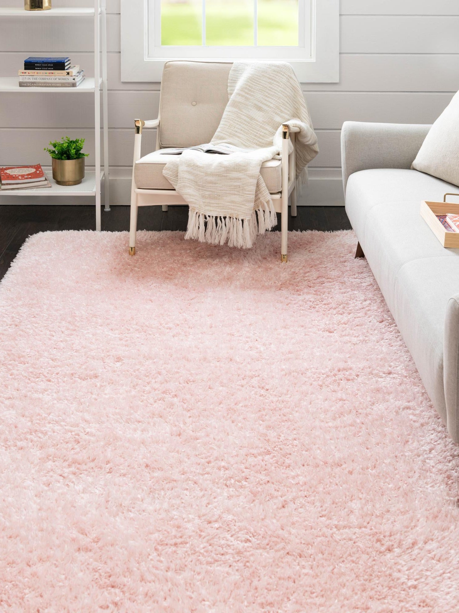 Pink Lace 7' 1 x 10' Infinity Shag Rectangle Area Rug Thick Soft Touch Fluffy & Plush Shaggy Pile 100% Polypropylene With Jute Backing Solid Color Minimalist Carpet