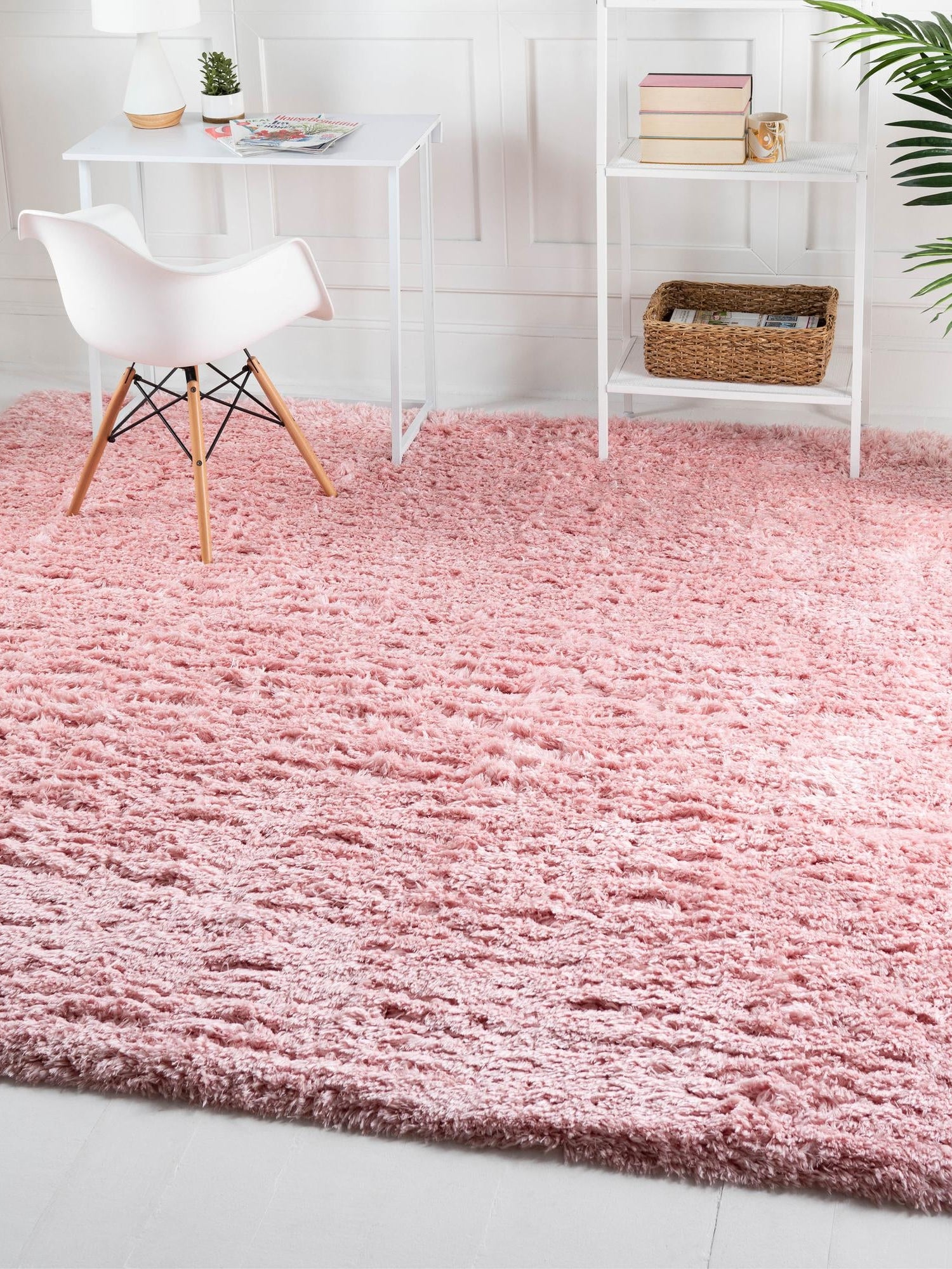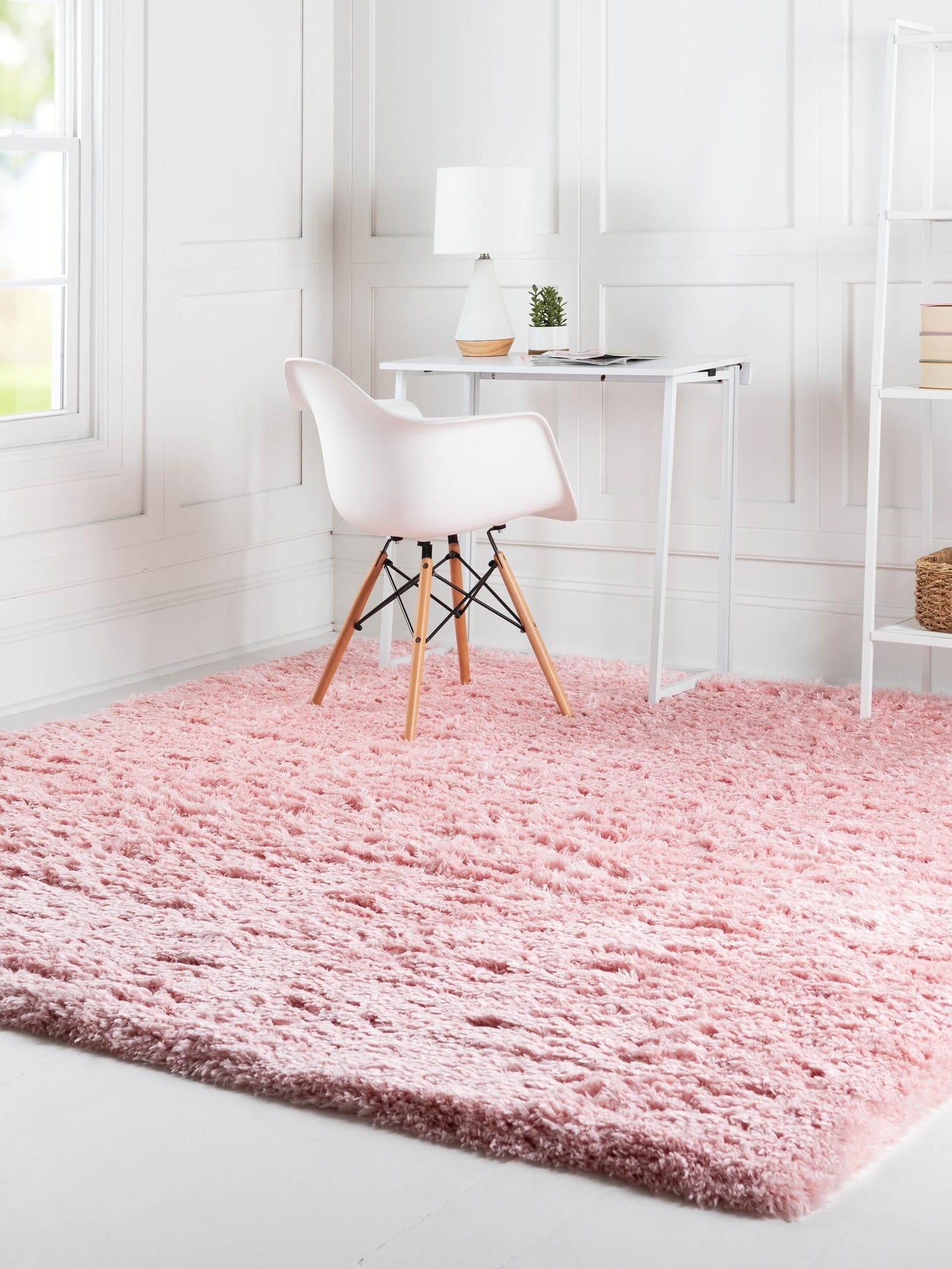 Pink Lace 8' x 8' Infinity Shag Square Area Rug Thick Soft Touch Fluffy & Plush Shaggy Pile 100% Polypropylene With Jute Backing Solid Color Minimalist Carpet