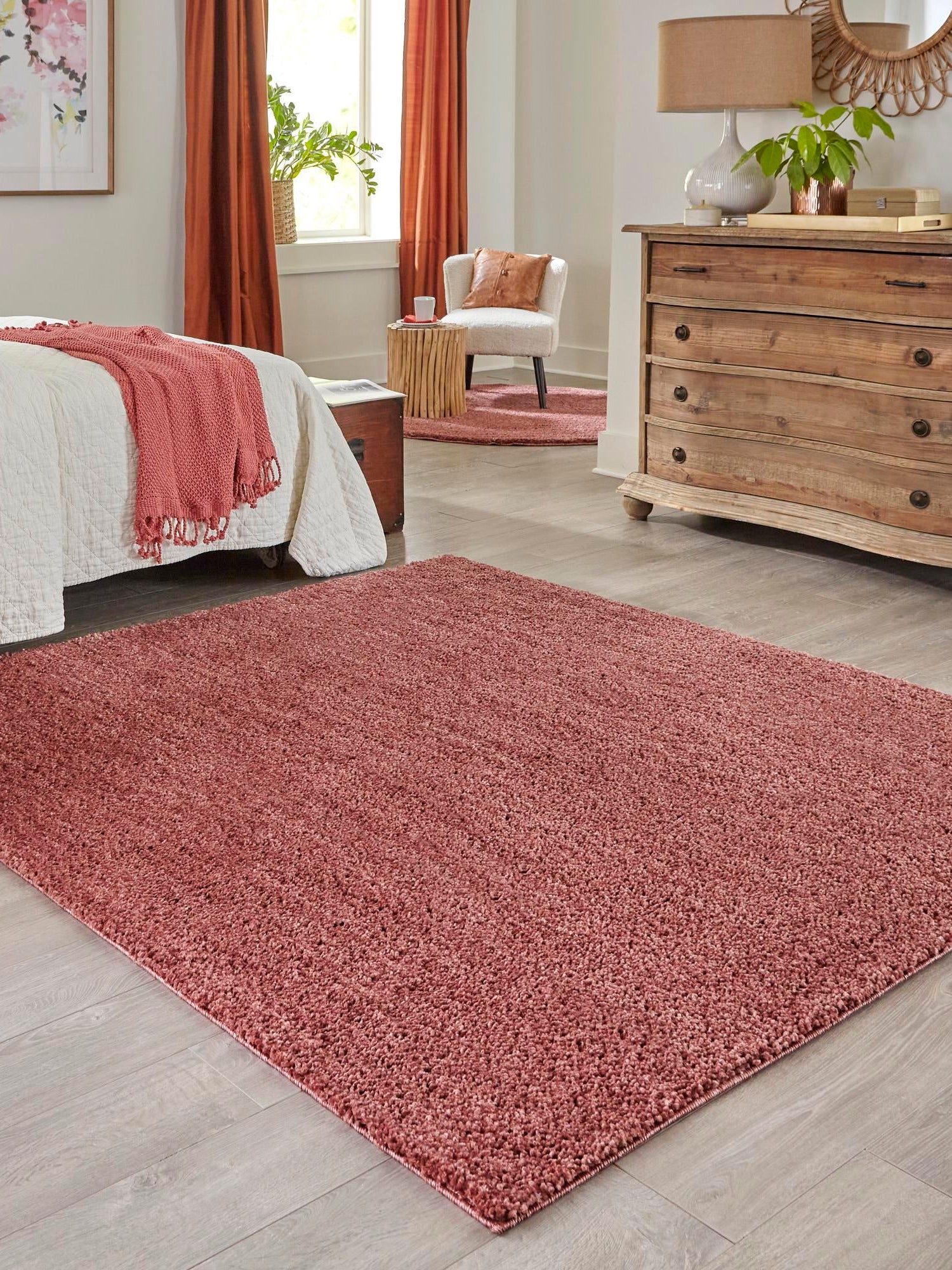 Pomegranate Red 6' 5 x 6' 5 Jill Zarin Shaggy Chic Square Area Rug Thick Soft Touch Fluffy & Plush Shaggy Pile 100% Polyester (Space-Dyed Yarn) With Jute Backing Carpet