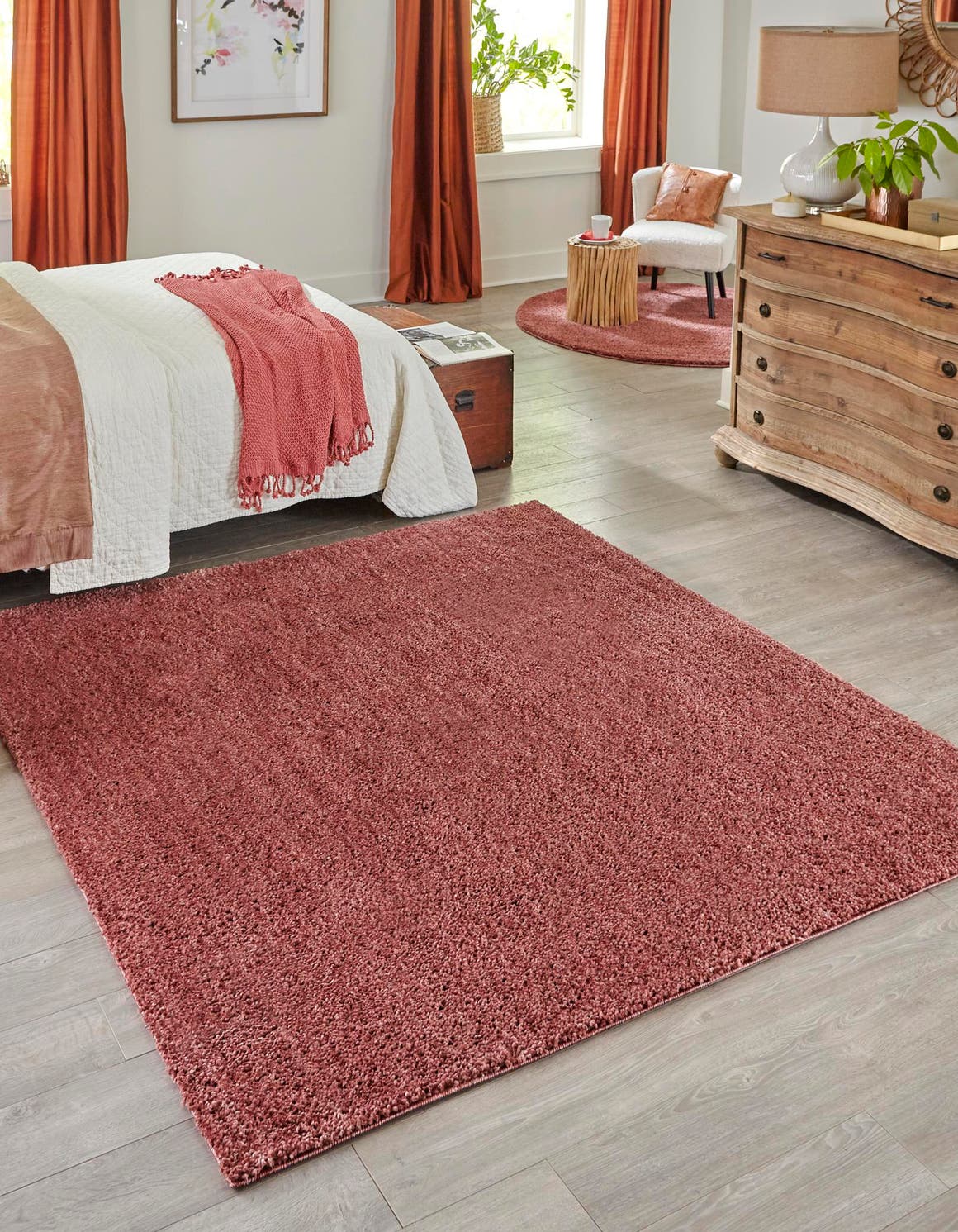 Pomegranate Red 7' 10 x 7' 10 Jill Zarin Shaggy Chic Square Area Rug Thick Soft Touch Fluffy & Plush Shaggy Pile 100% Polyester (Space-Dyed Yarn) With Jute Backing Carpet