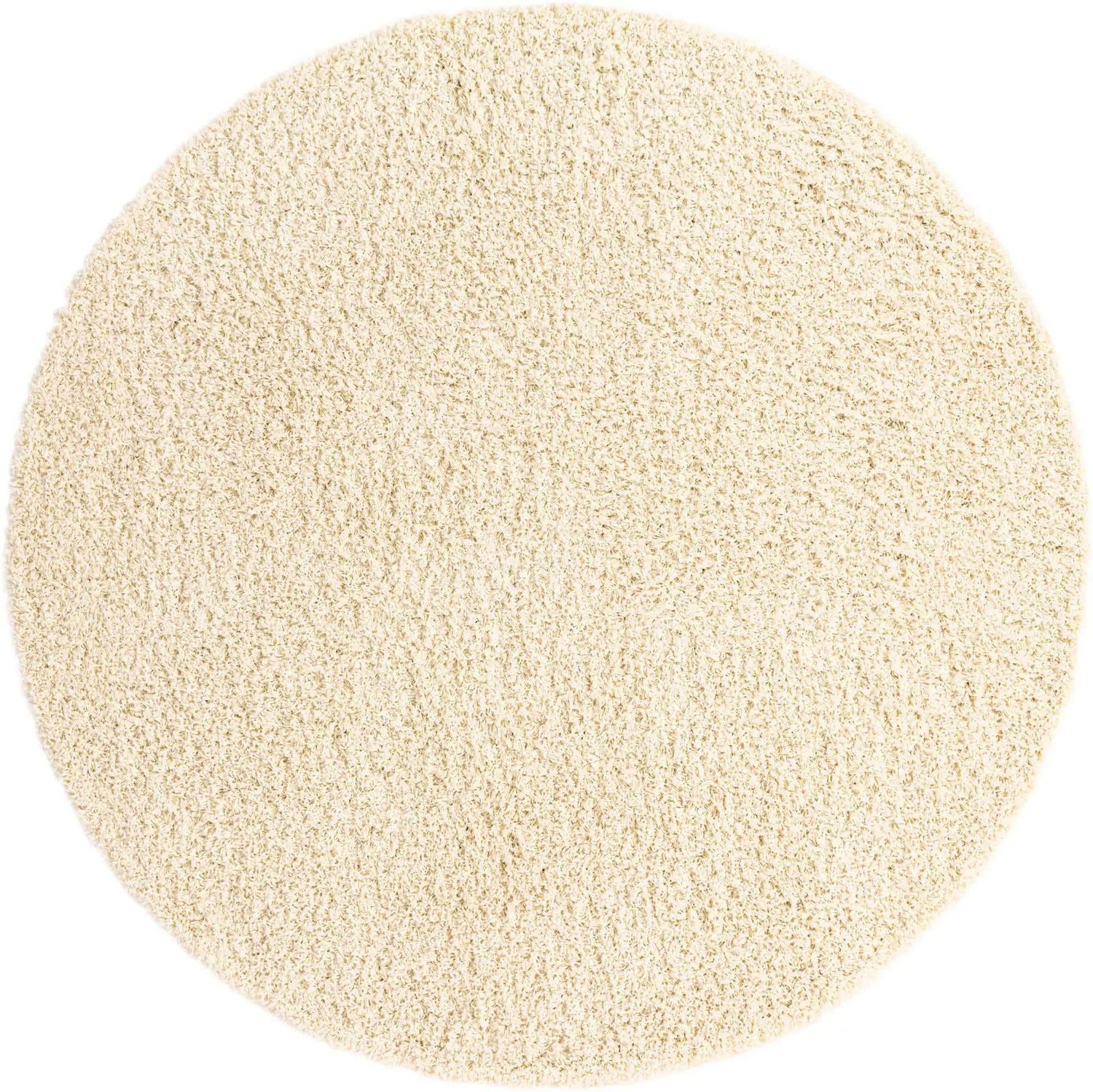 Pure Ivory 3' 1 x 3' 1 Solid Shag Round Area Rug Thick Soft Touch Fluffy & Plush Shaggy Pile