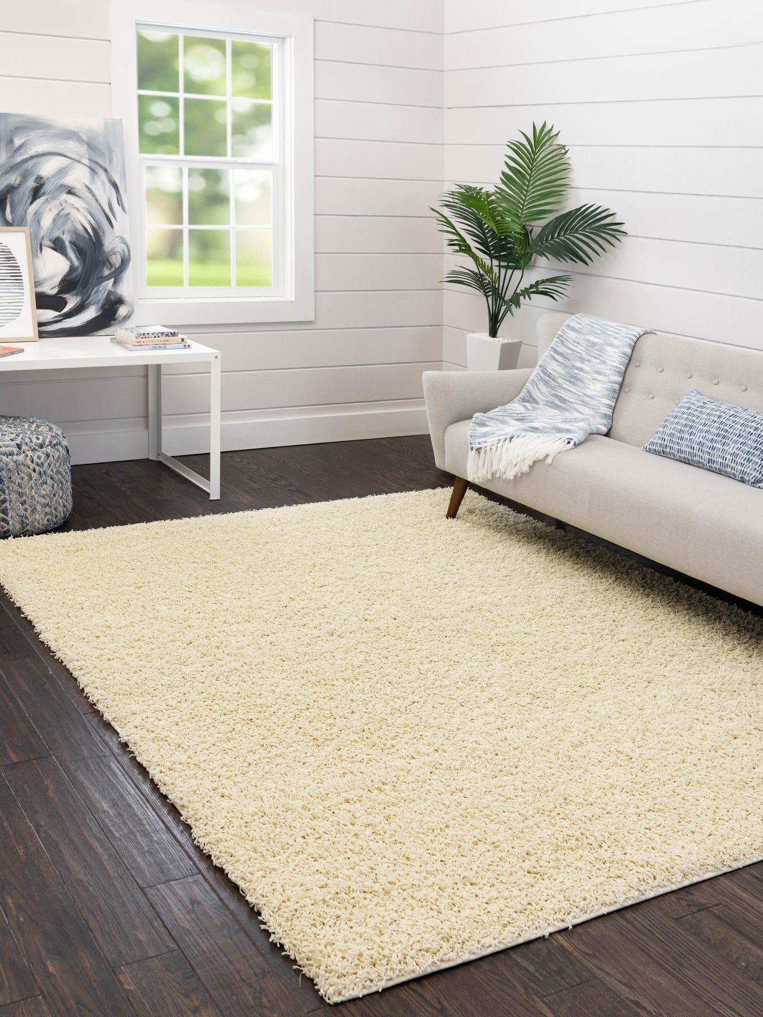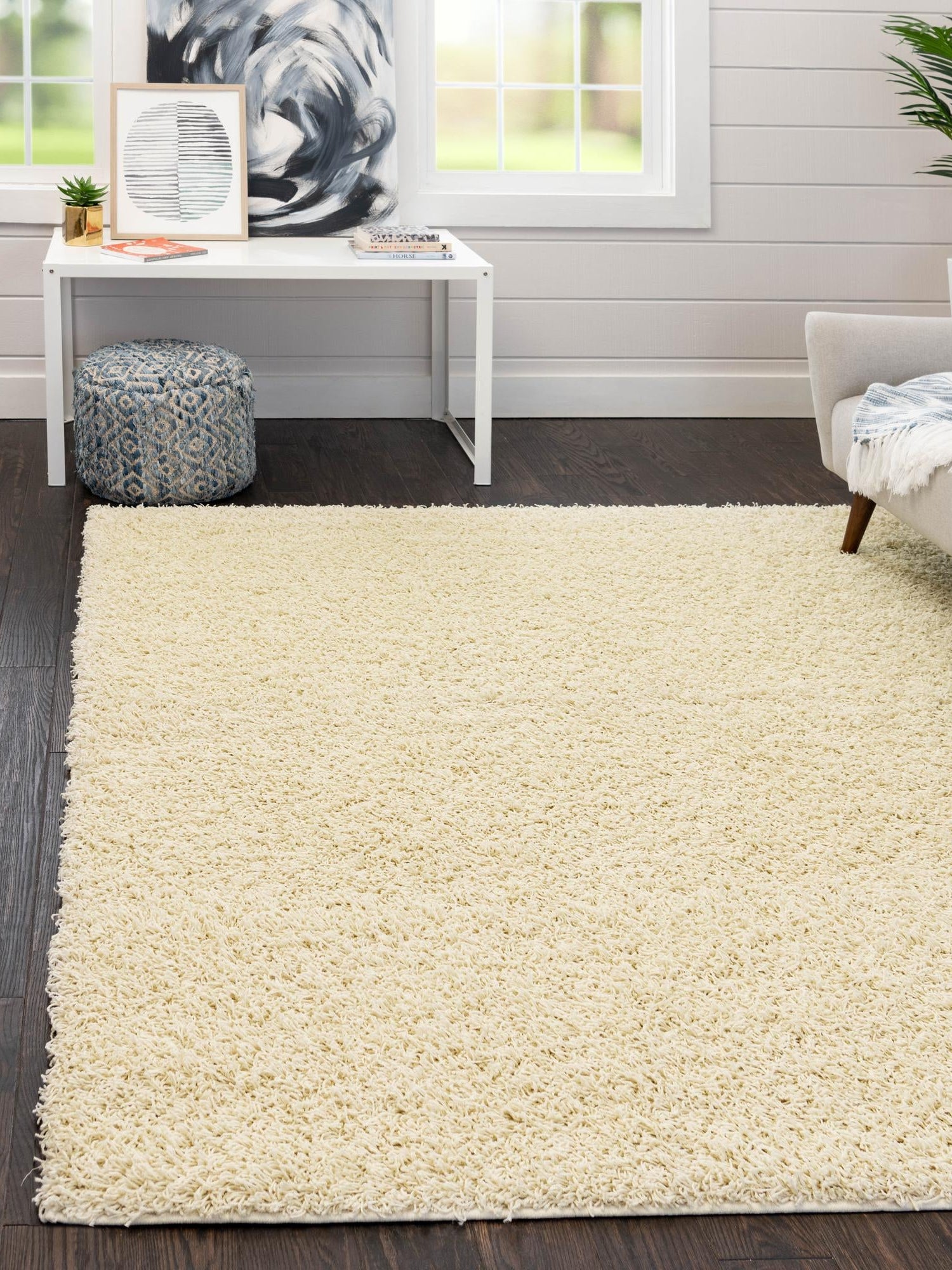 Pure Ivory 7' x 7' Comfort Solid Shag Square Area Rug Thick Soft Touch Fluffy & Plush Shaggy Pile 100% Polypropylene for Living Room, Office, Bedroom