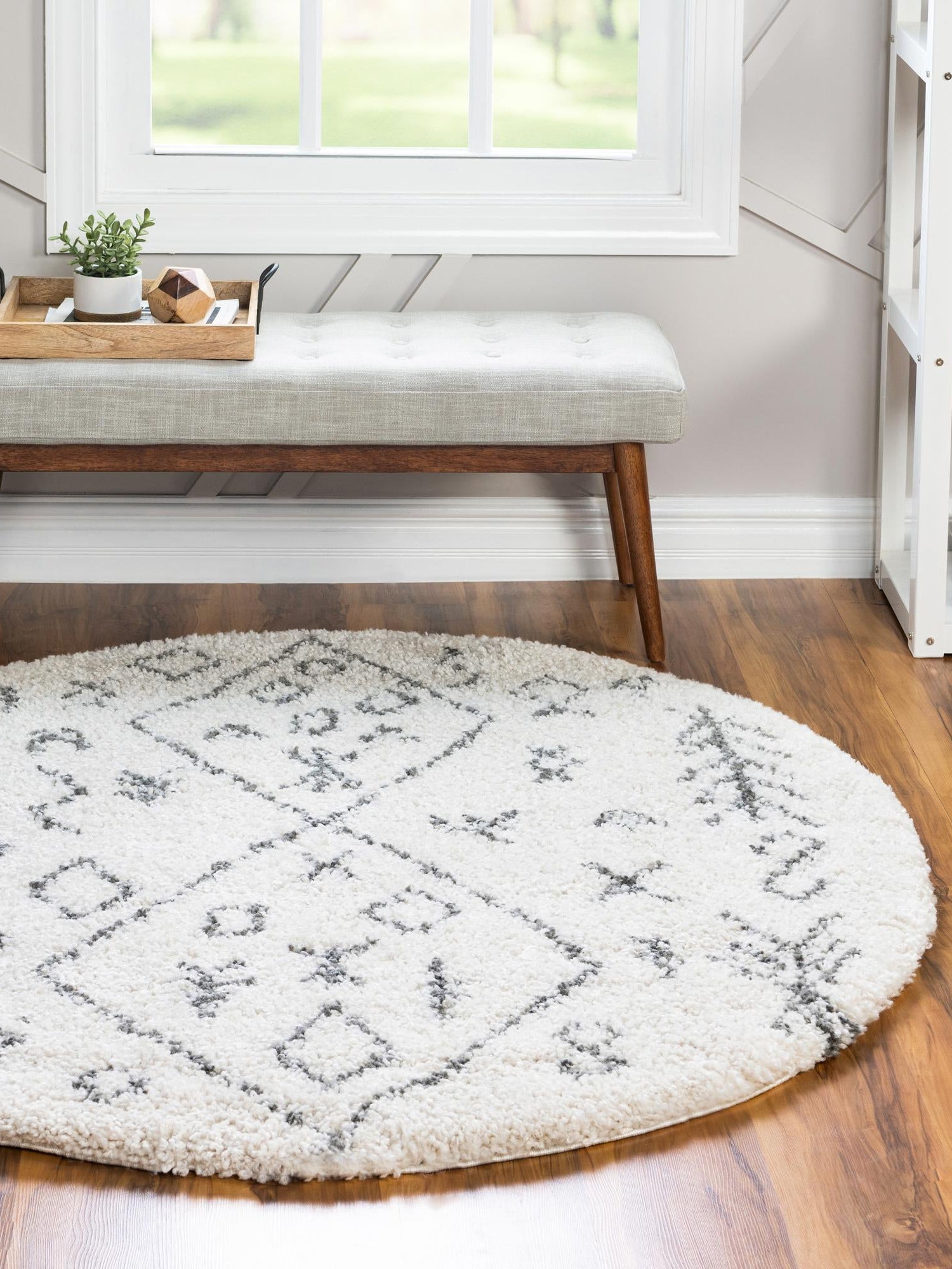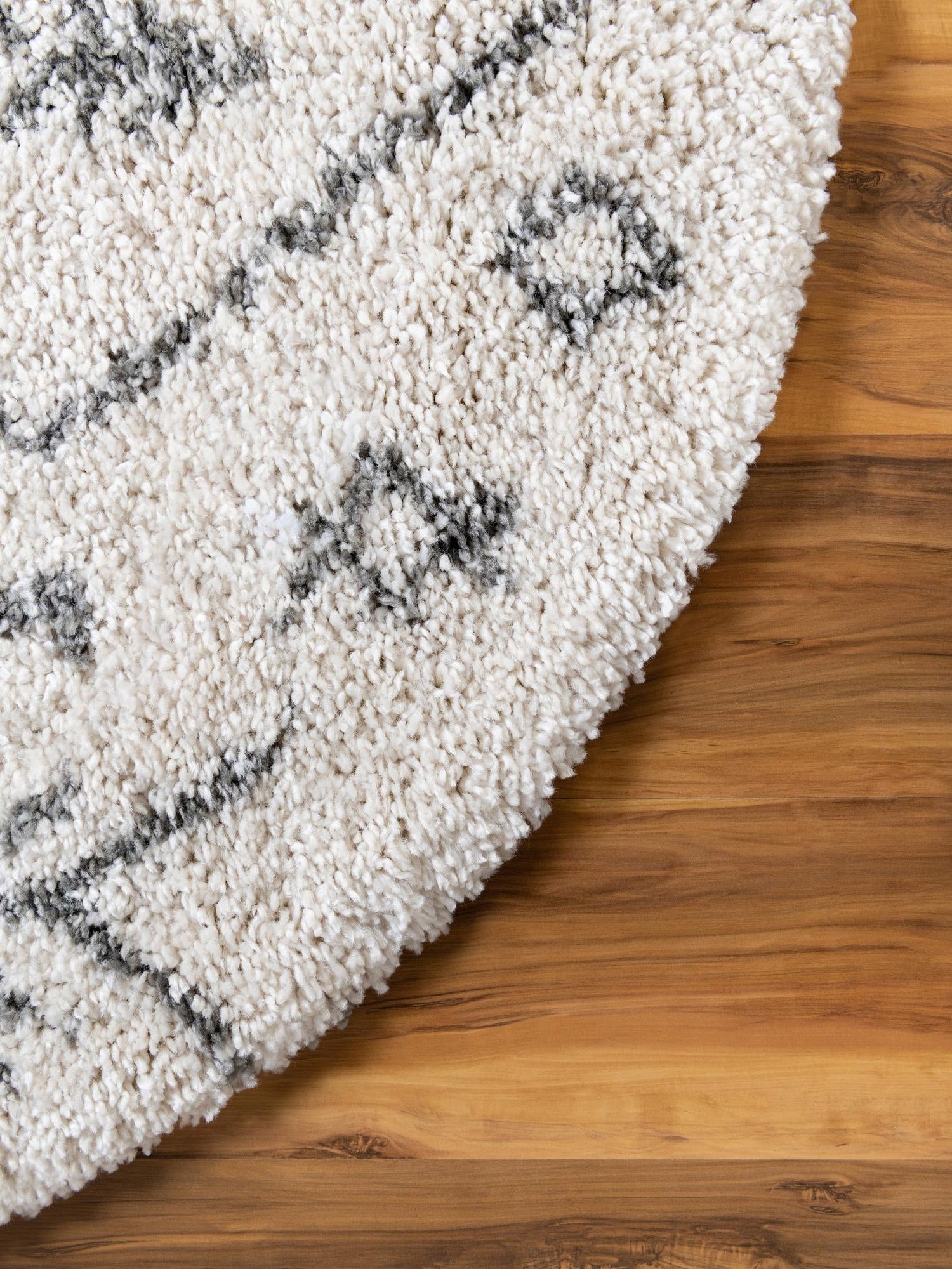 Pure Ivory 8' x 8' Rabat Shag Round Area Rug Thick Soft Touch Fluffy & Plush Shaggy Pile
