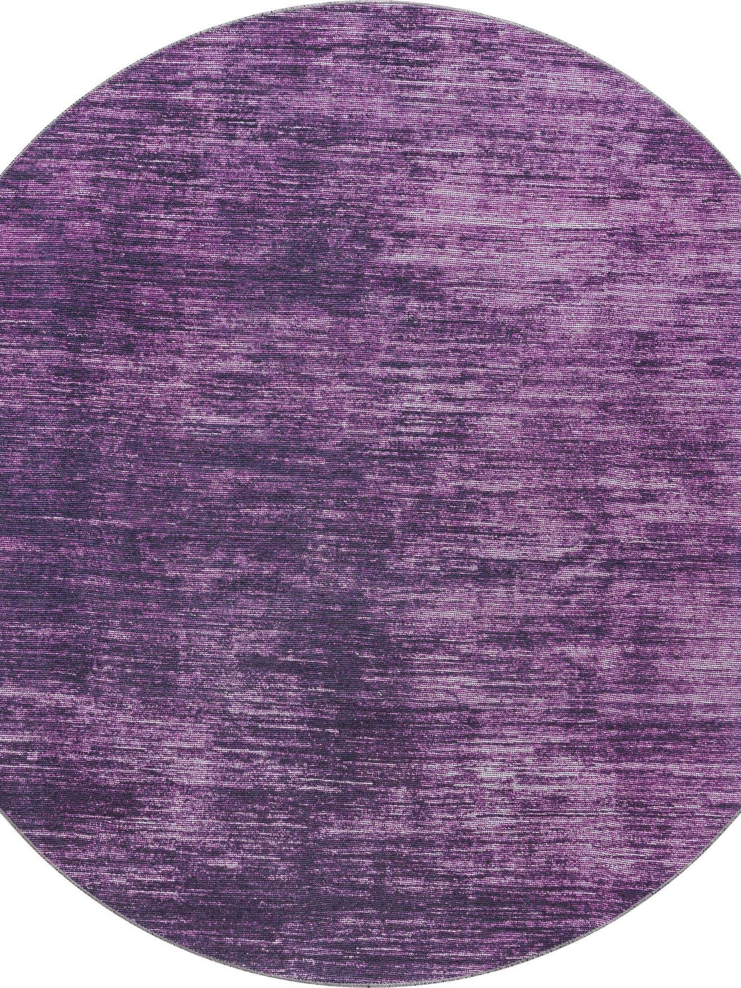 Purple 7' 7 x 7' 7 Asha Round Area Rug 100% Chenille Cotton Easy Clean Indoor Living Dining Bedroom Office Carpet