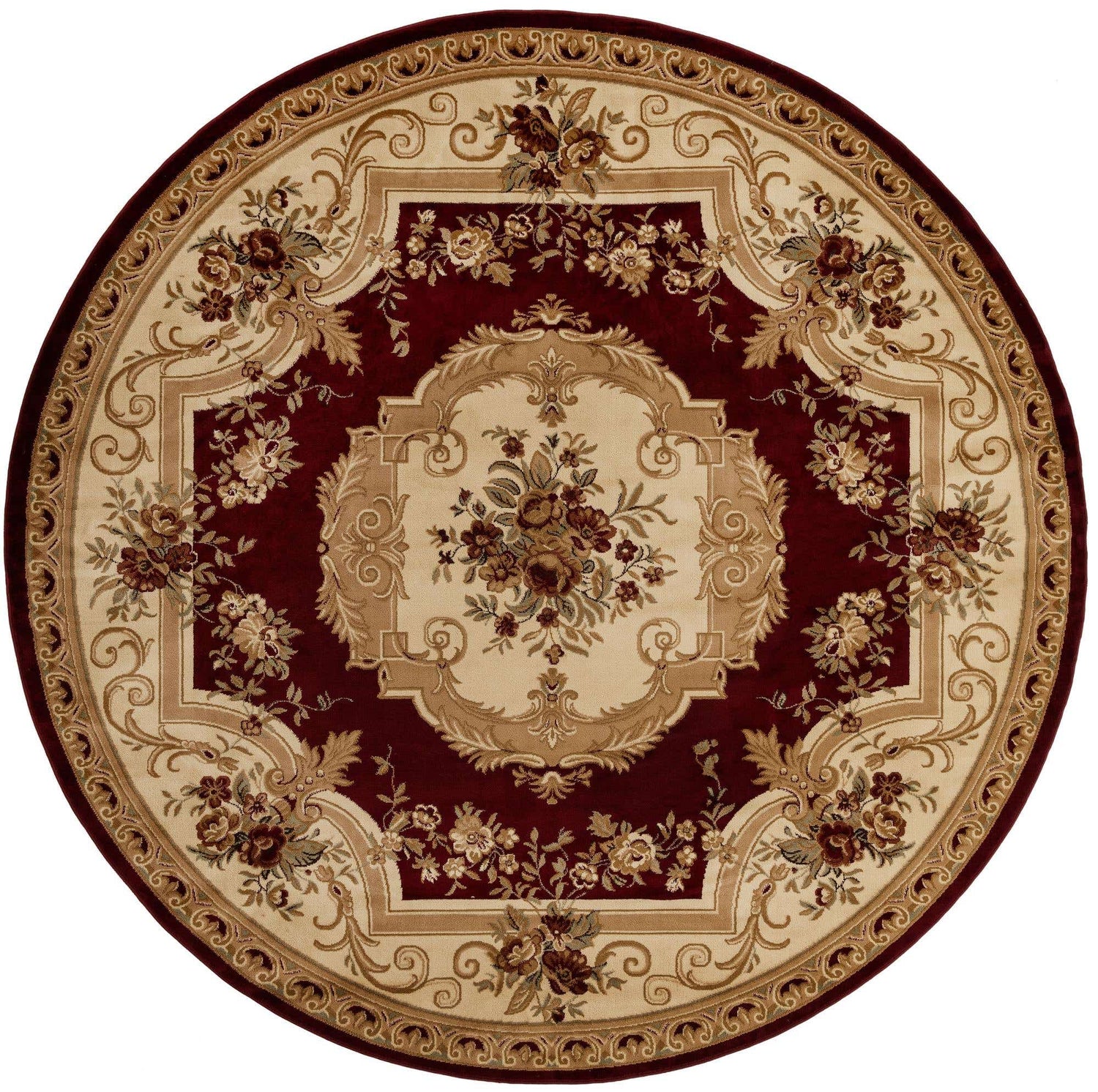 Washable Burgundy Red 5' 1 x 5' 1 Timeless Round Area Rug Easy to Clean Stain Resistant & Durable