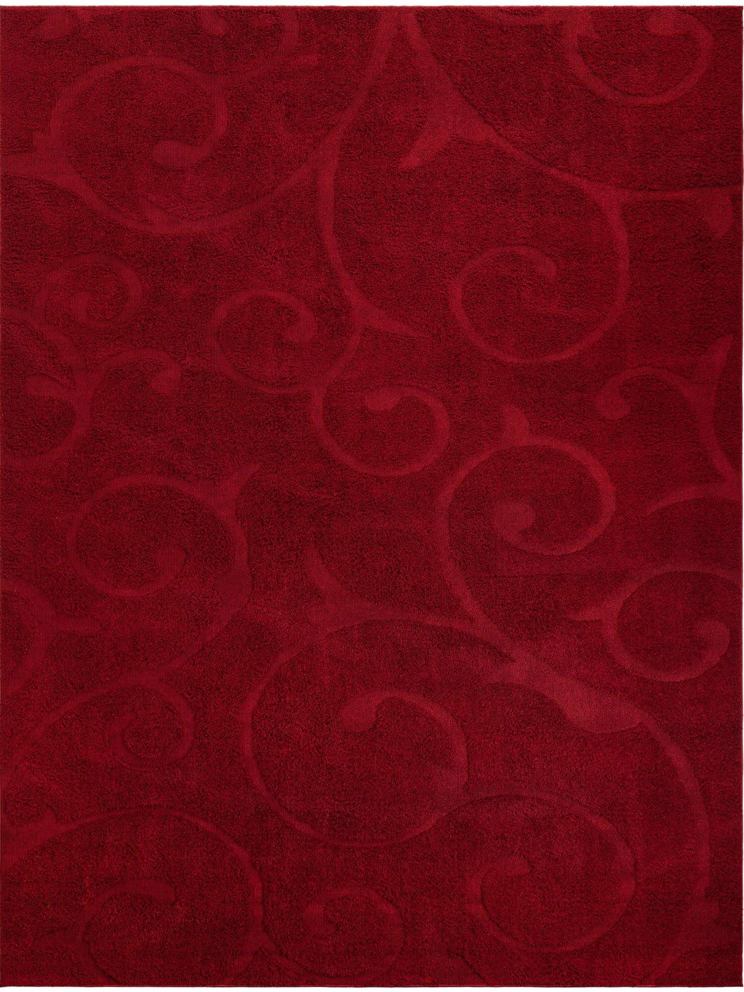 Red 10' x 13' Floral Shag Rectangle Area Rug Thick Soft Touch Fluffy & Plush Shaggy Pile 100% Polyester With Cotton Backing Carpet for Interior Design