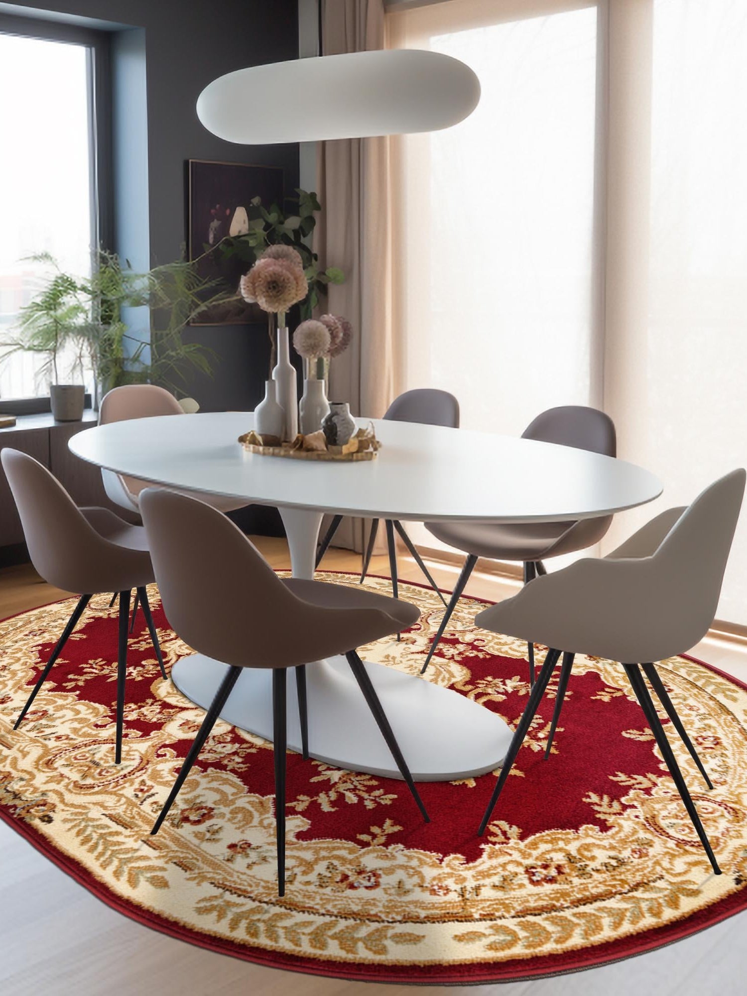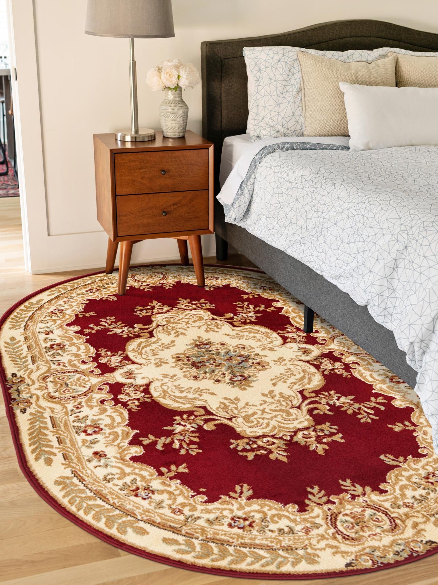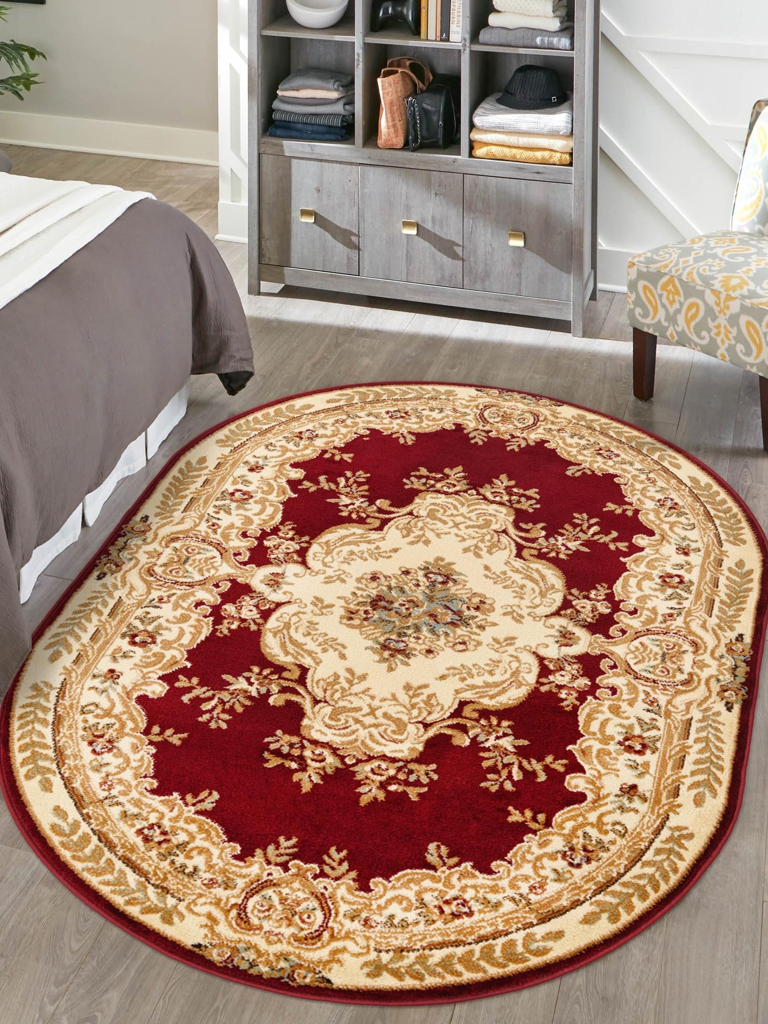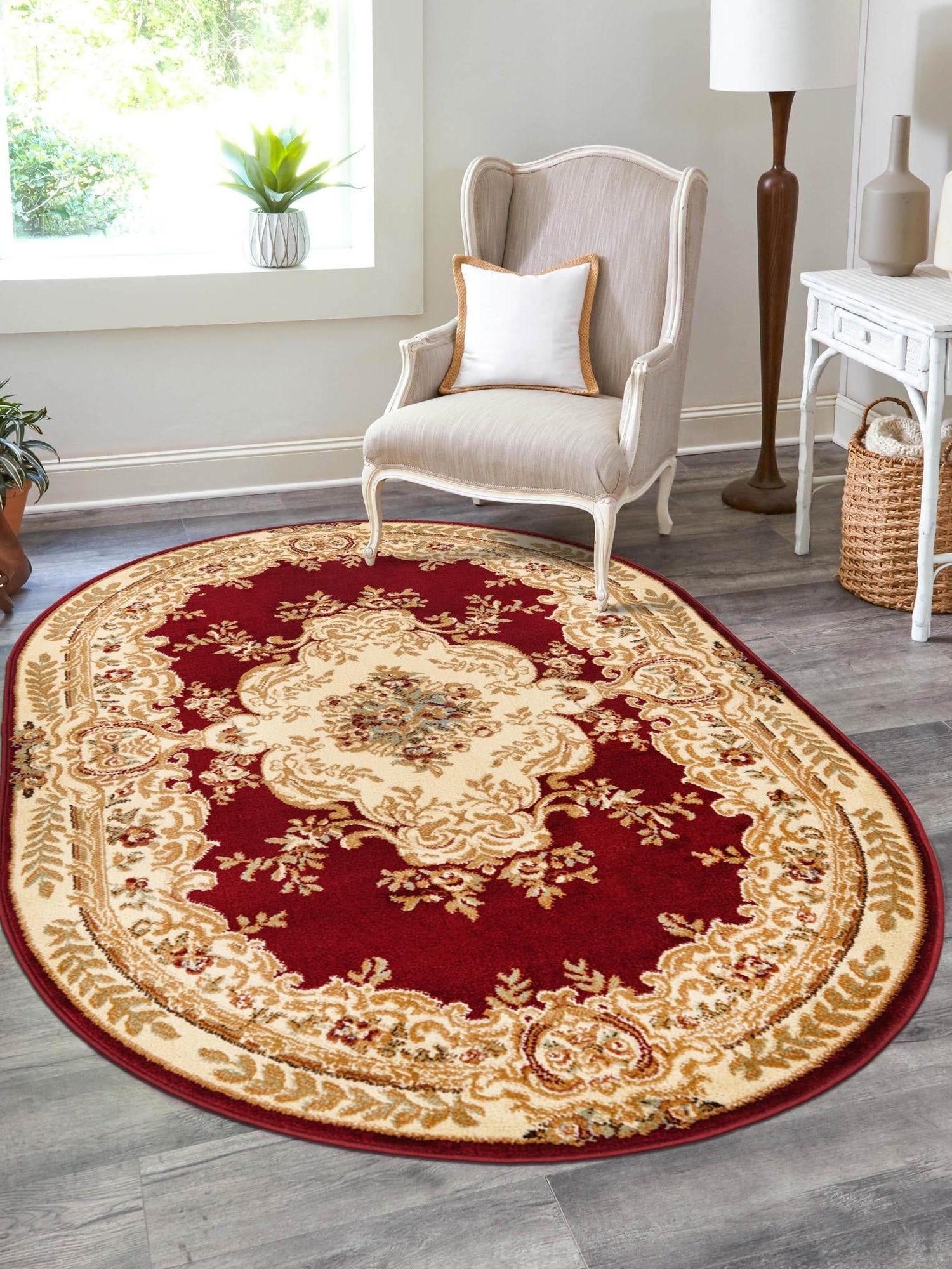 Washable Red 2' x 3' 1 Timeless Oval Area Rug Easy to Clean Stain Resistant & Durable