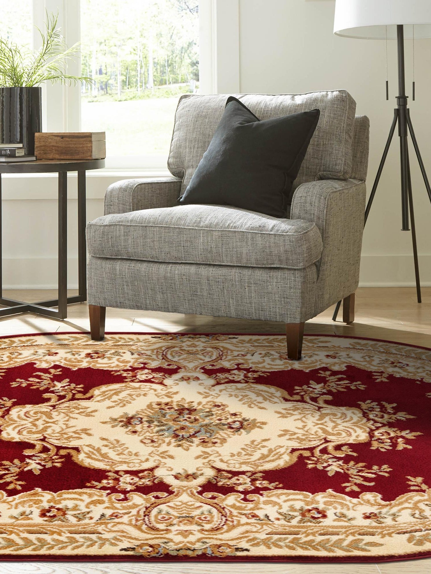 Washable Burgundy Red 5' 1 x 5' 1 Timeless Round Area Rug Easy to Clean Stain Resistant & Durable