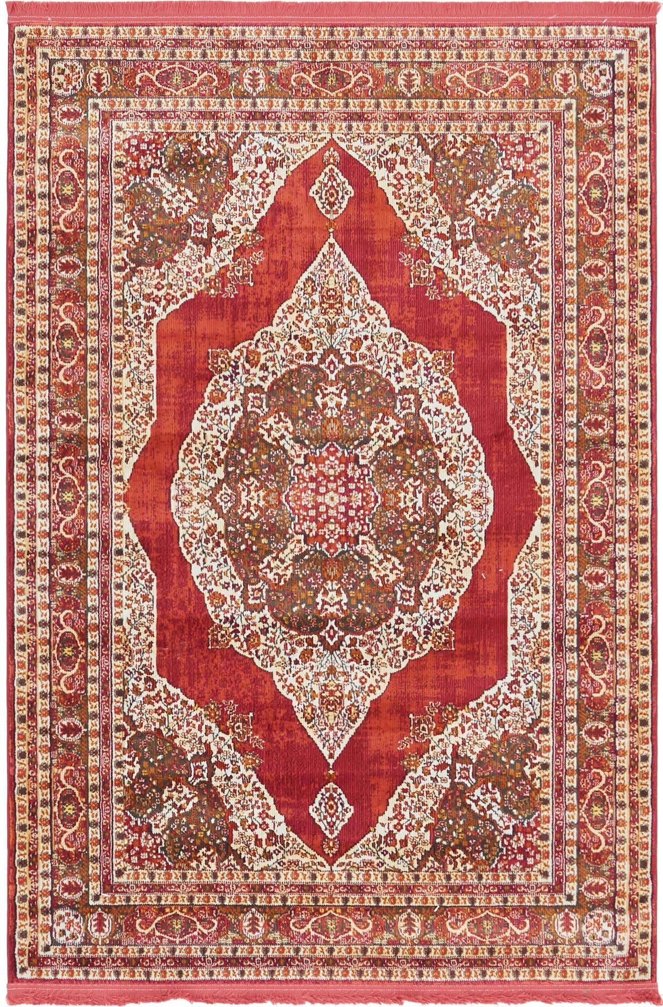 Red 4' 3 x 6' 1 Baracoa Rectangle Area Rug 100% Polypropylene Distressed Vintage Living Dining Room Office Traditional Carpet
